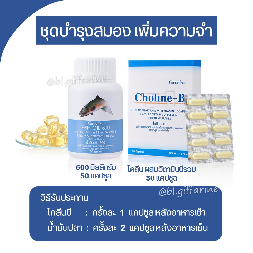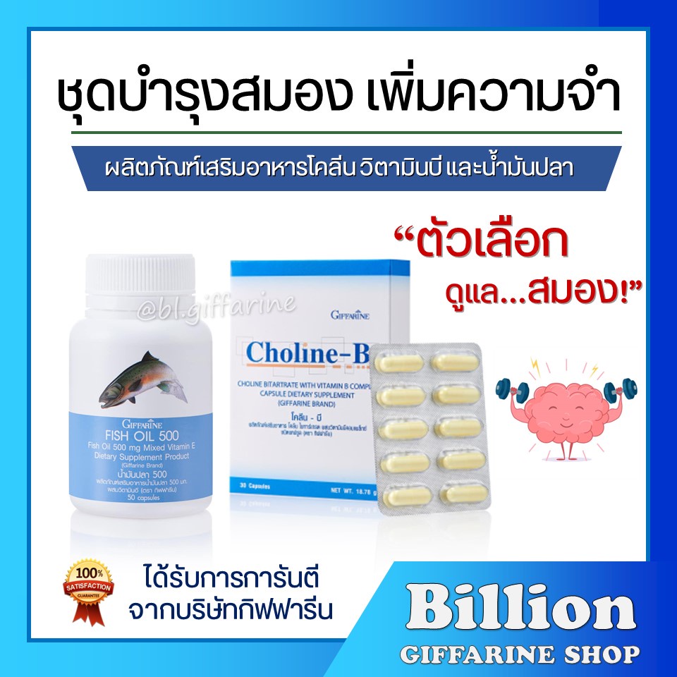 [ ส่งฟรี ] ชุด บำรุงสมอง เพิ่มความจำ ด้วย น้ำมันปลา โคลีนบี กิฟฟารีน ( Fisn Oil 500 mg / Choline-B )
