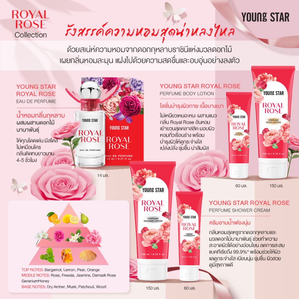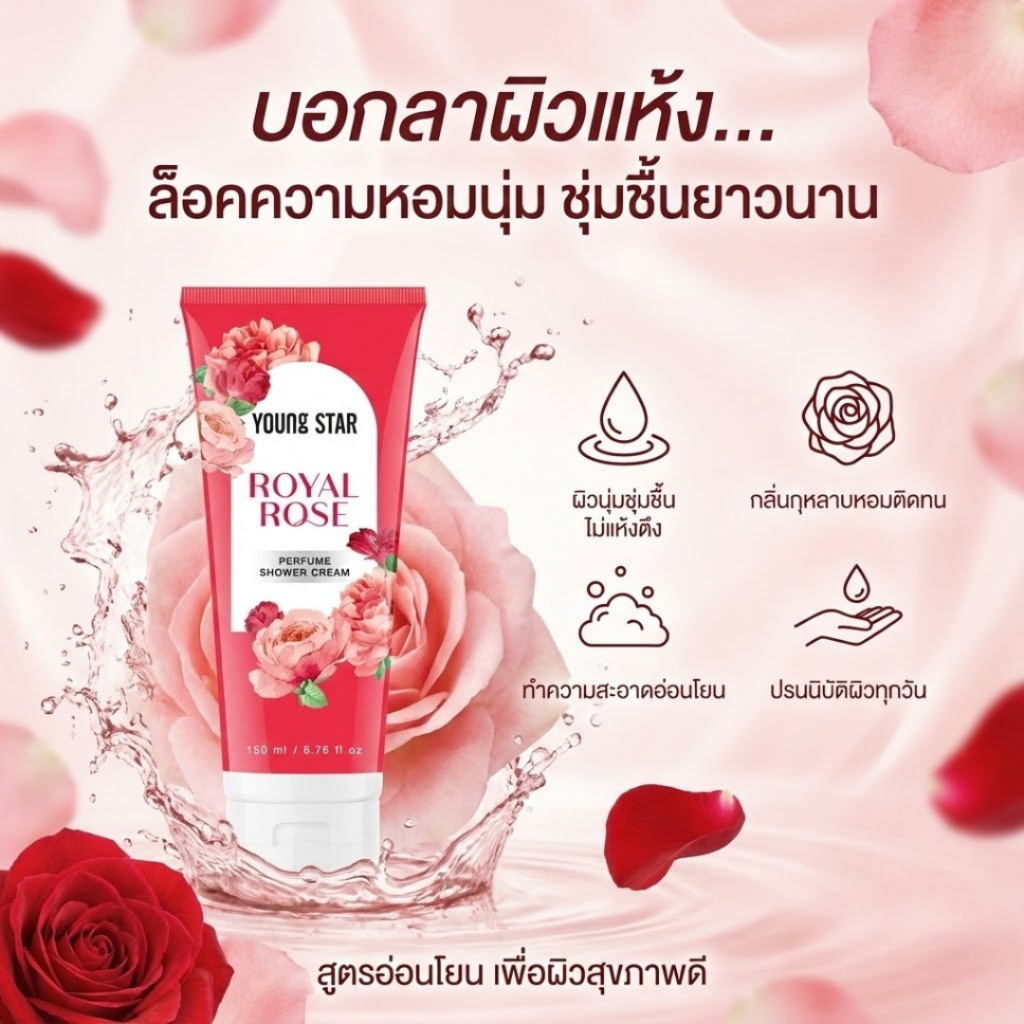[CLEARANCE][1 แถม 1] YOUNG STAR ครีมอาบน้ำ กลิ่น ROYAL ROSE 150ml. หอมละมุน ดุจอาบผิวด้วยกุหลาบ ทำความสะอาดผิวอ่อนโยน