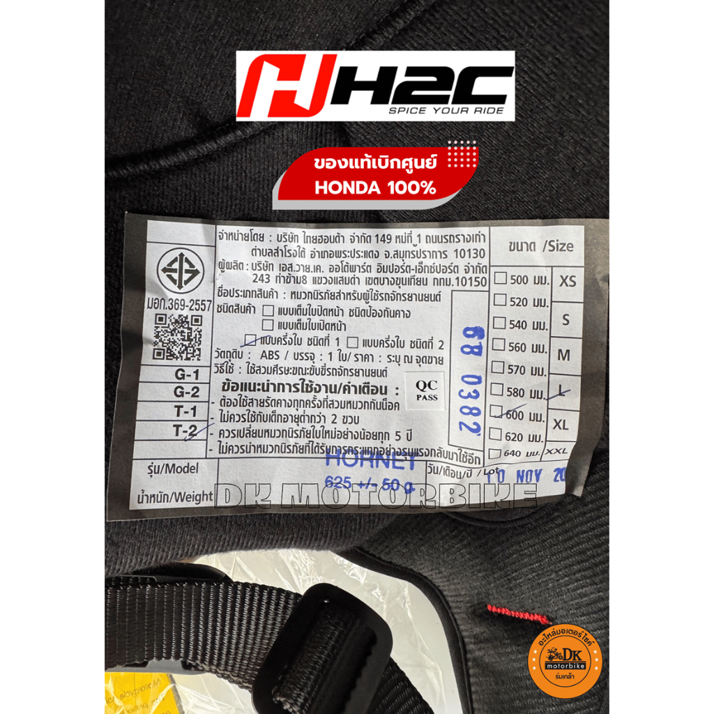 หมวกกันน๊อค H2C-รุ่นครึ่งใบ สังคมหัวแข็ง (ของแท้เบิกศูนย์ HONDA 100%) สีขาว SIZE L 600 มม. (มีขายสีเดียว) THCSRHNHF2FSZA