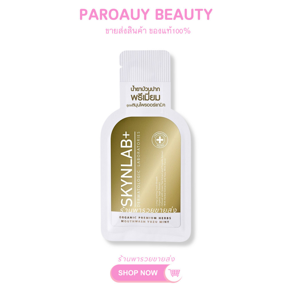 ( 1 ซอง ) สีทอง สกินแล็บ น้ำยาบ้วนปาก สูตรสมุนไพร ลดคราบพลัคโปรตีน Skynlab Mouthwash 15 ml.