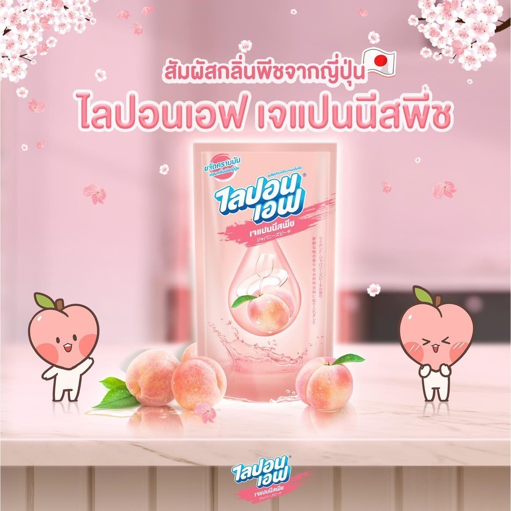 [แพ็ค3ถุง] Lipon F ไลปอน เอฟ น้ำยาล้างจาน เจแปนนีส พีช ชนิดถุงเติม ปริมาณ 450มล.