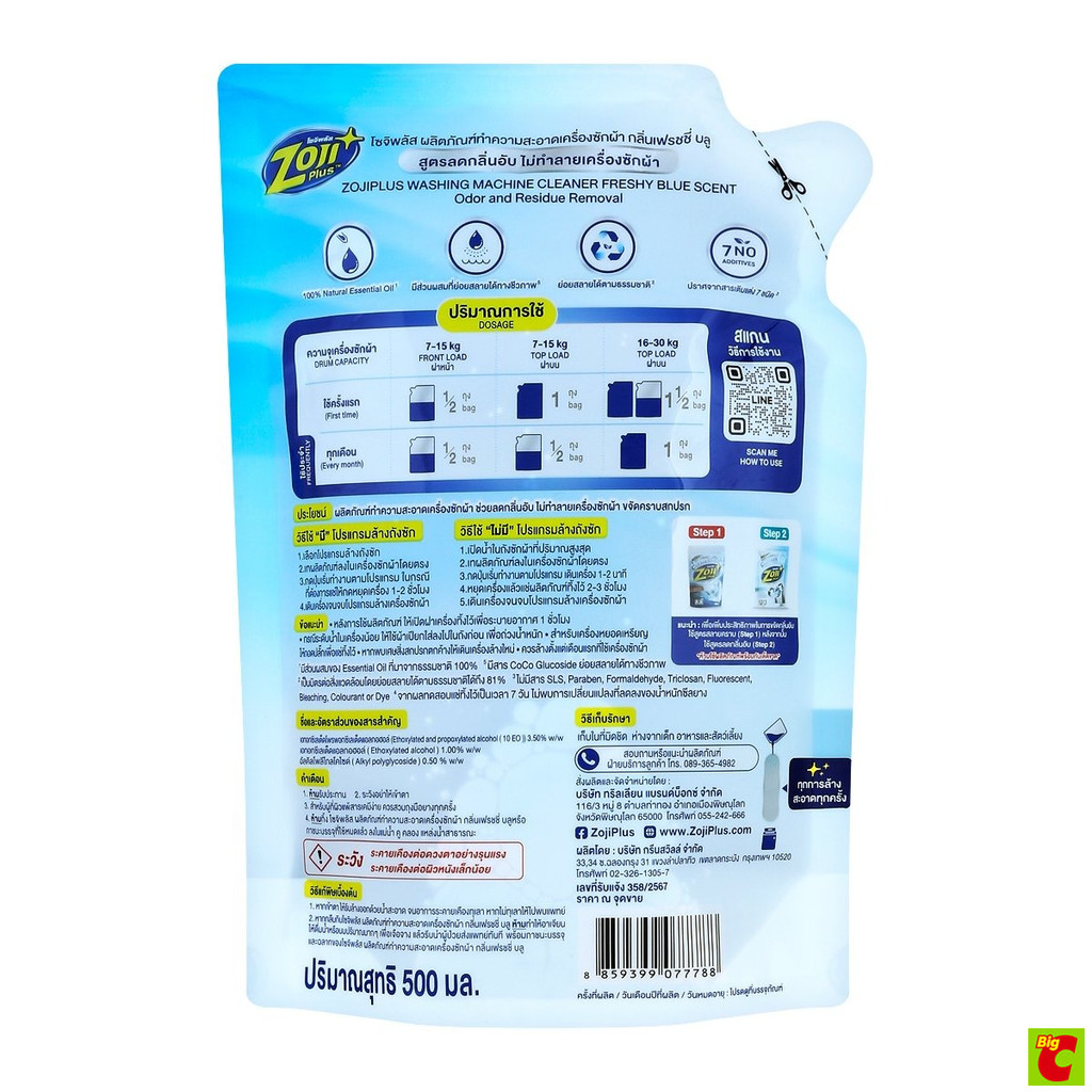 โซจิแมน ผลิตภัณฑ์ทำความสะอาดเครื่องซักผ้า สูตรลดกลิ่นอับ กลิ่น เฟรชบลู 500 มล.