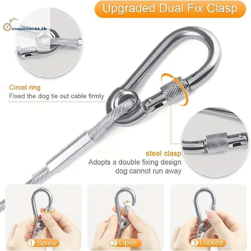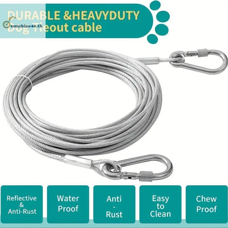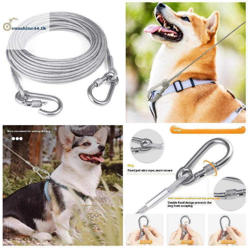 FOURSUN Double-headed Dog Tie Out Cable Leash,raction Rope หัวเข็มขัดโลหะลวดเหล็ก Anti-rust Training Collar, สุนัขกลางแจ้งสาย TH