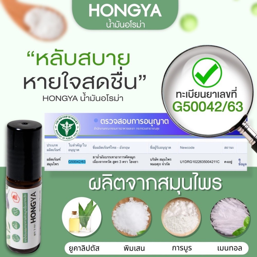 Hong Ya Aroma โฮงยา อโรม่า น้ำมันนวด ลูกกลิ้ง คัดจมูก หอมสดชื่น