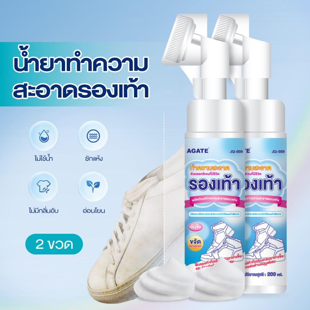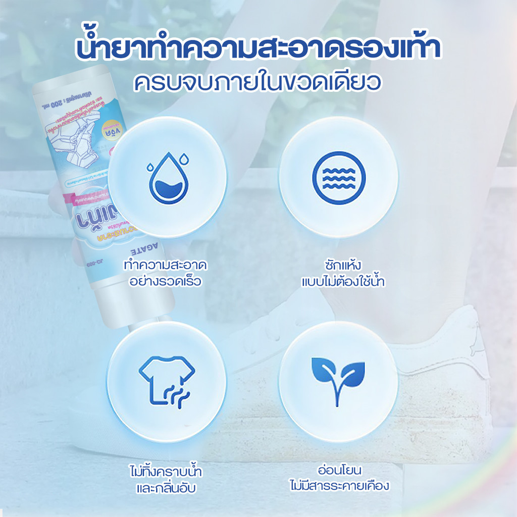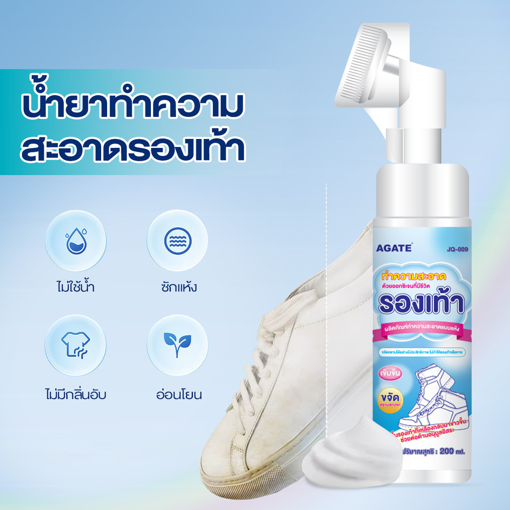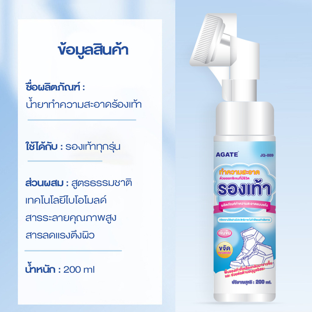 【Agate ของแท้】น้ำยาทำความสะอาดรองเท้าสีขาว น้ำยาซักแห้งรองเท้า 200MLขจัดคราบสกปรกไม่ต้องใช้น้ำ
