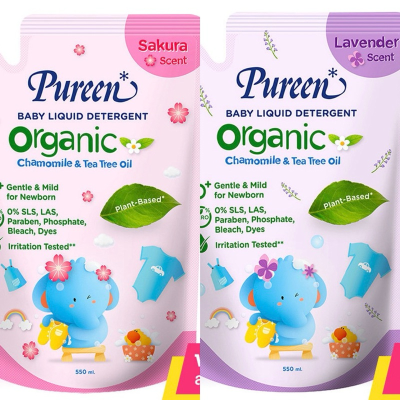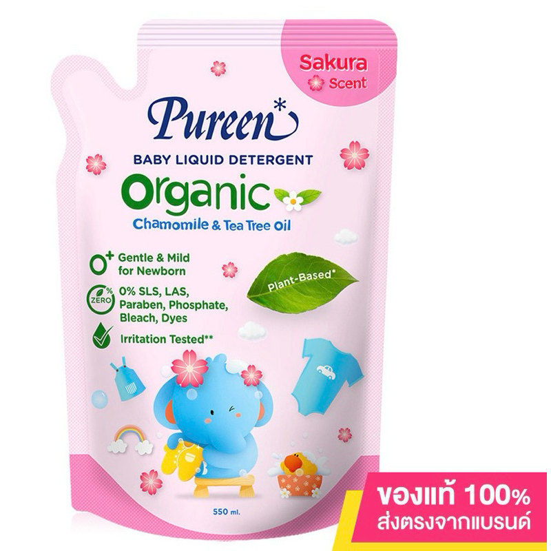 Pureen Organic Baby Liquid Detergent Refill 550ml น้ำยาซักผ้าเด็ก สูตรออร์แกนิค แบบรีฟิล.E47XX32