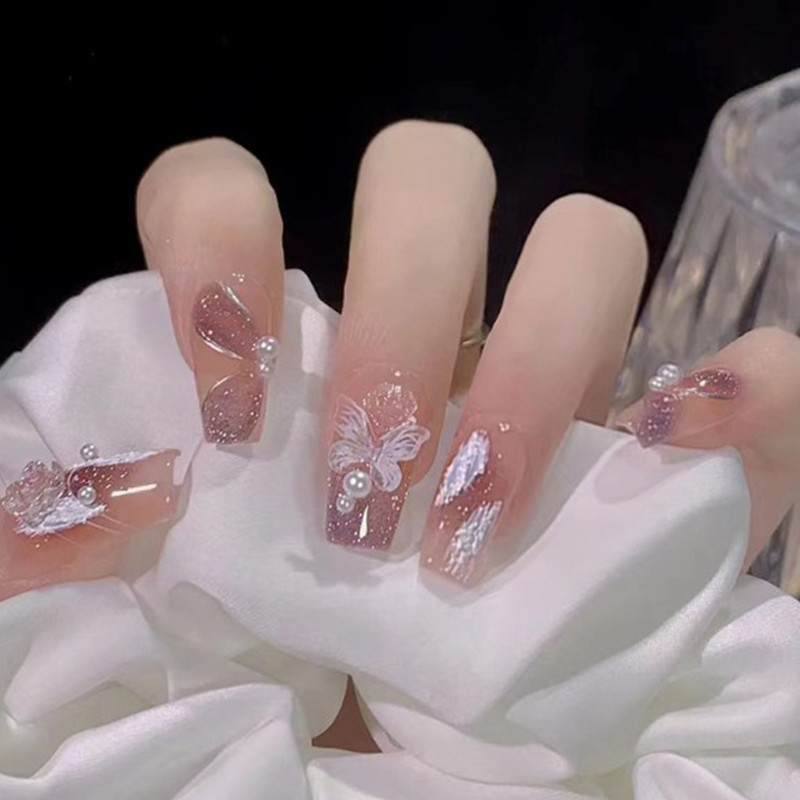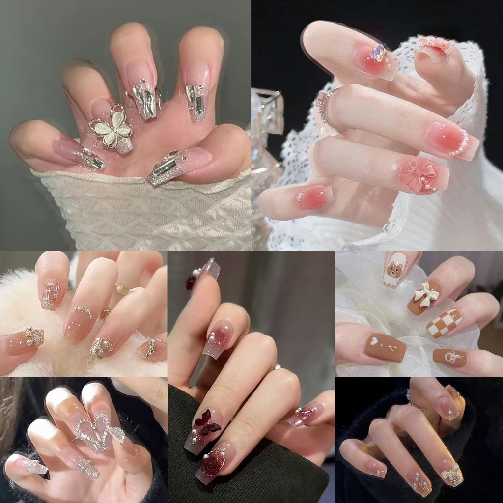 YTL เล็บแฟชั่น เล็บปลอม ชนิดอะคริลิค สไตล์ฝรั่งเศส สีขาว ชมพู 24 ชิ้น ลายสวย ชัดเจน ไม่เลือน มี 13 แบบ