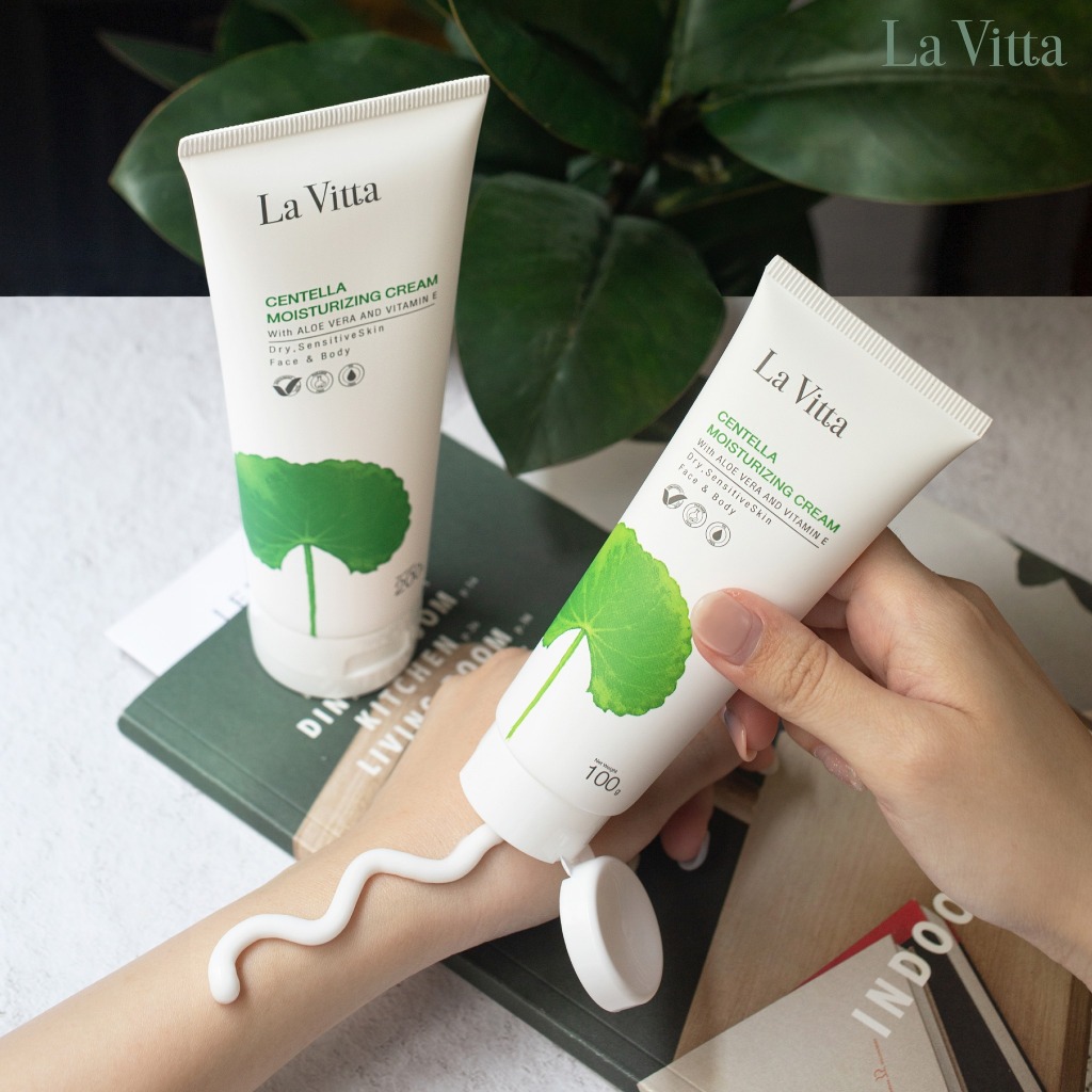 La Vitta CENTELLA MOISTURIZING CREAM WITH ALOE VERA AND VITAMIN E (ครีมบำรุงผิวหน้าและผิวกาย สูตรอ่อนโยน)