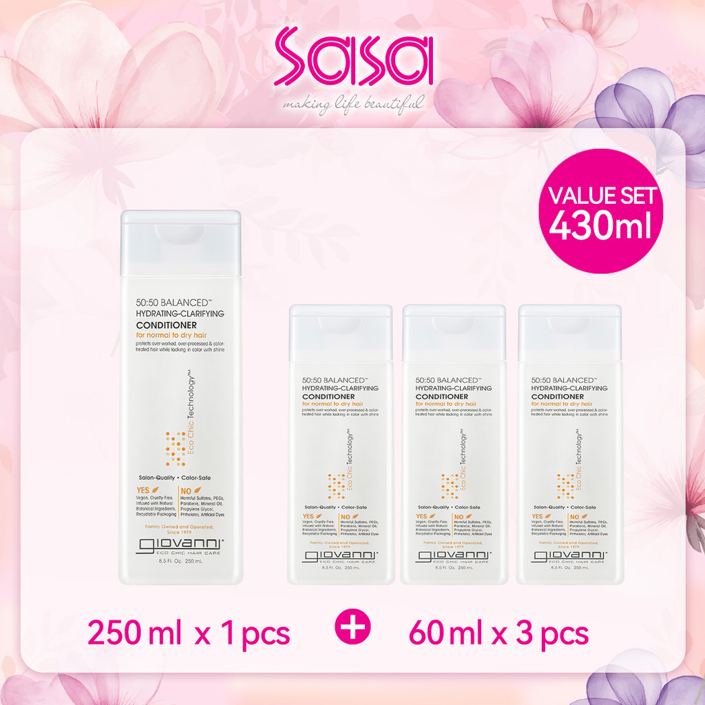 Giovanni 50:50 Balanced Hydrating-Calming Conditioner Value Set (250ml x 1pc + 60ml x 3pcs)