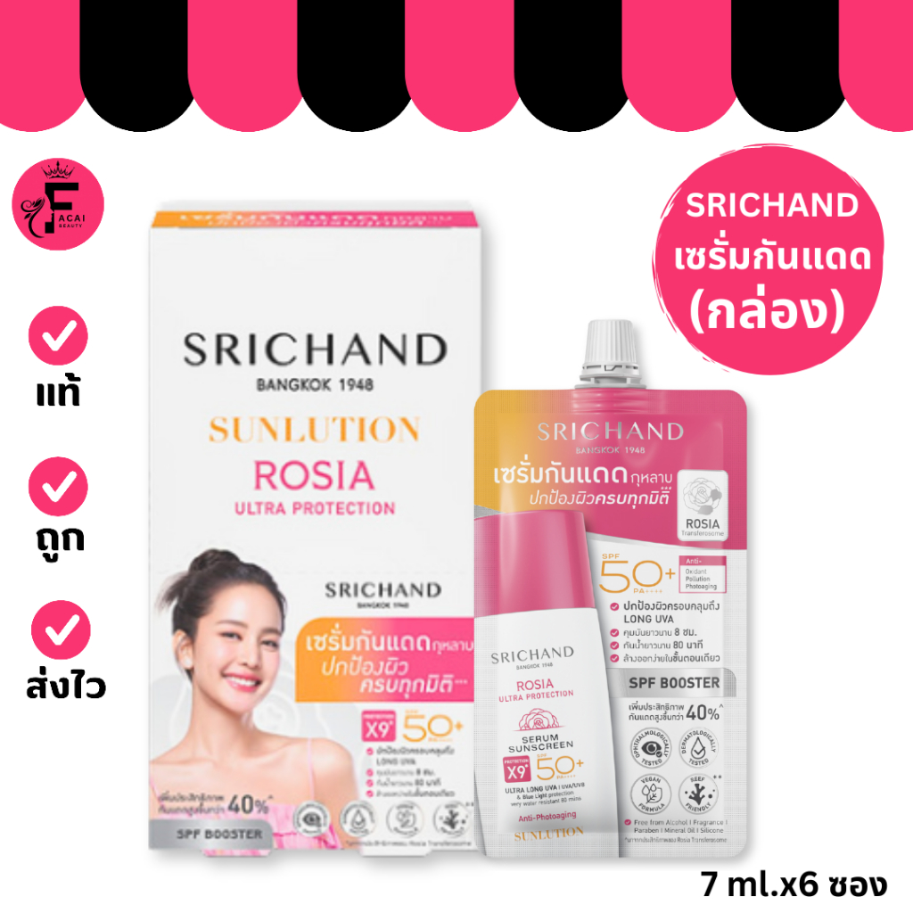 (กล่อง 6 ซอง) Srichand Sunlution Rosia ศรีจันทร์ ซันลูชั่น โรเซีย อัลตร้า เซรั่มซันสกรีน (7 ml.)