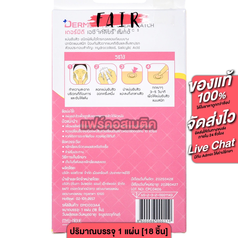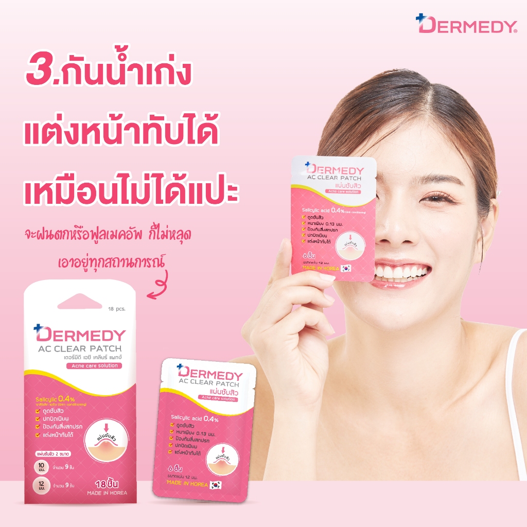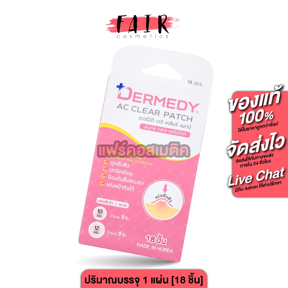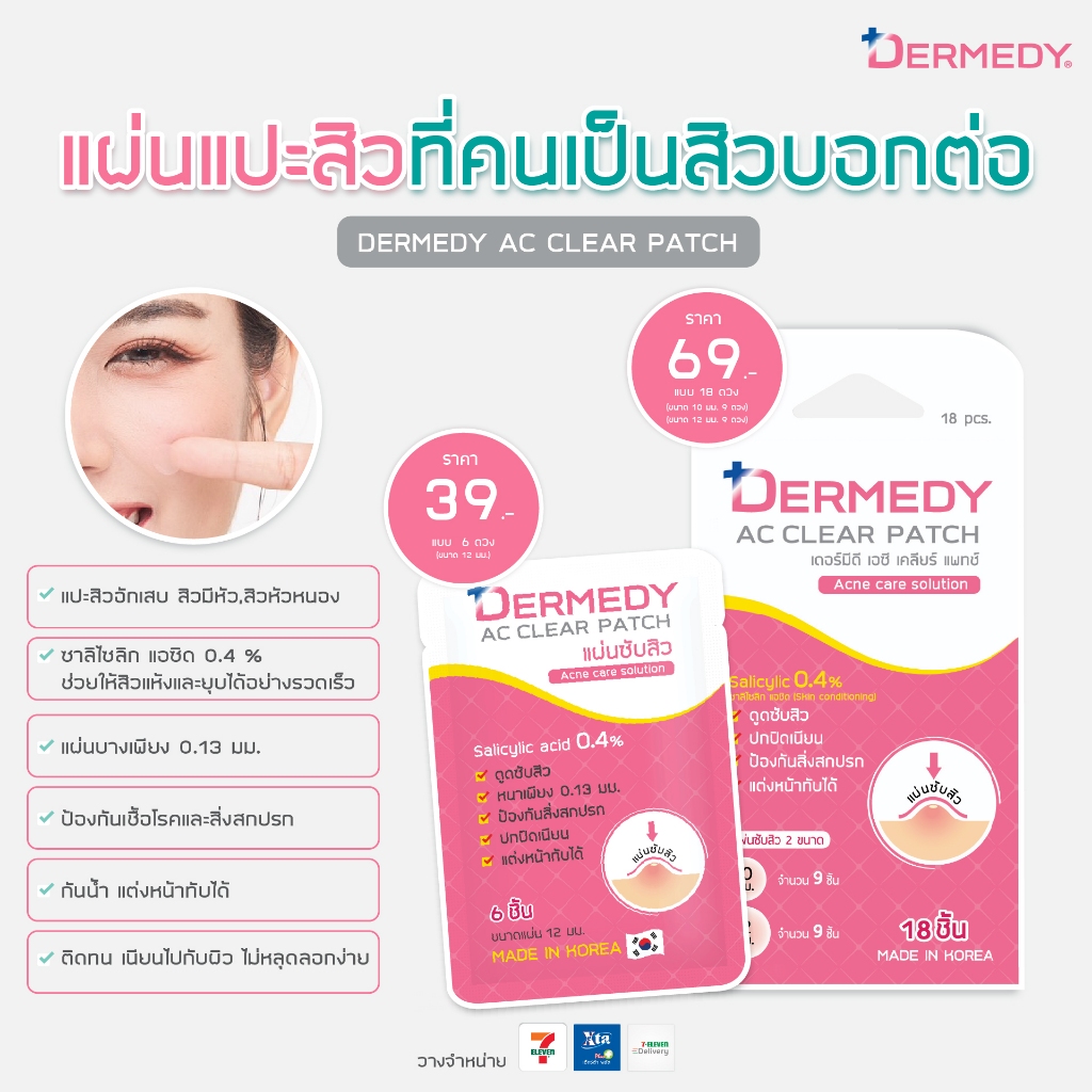 Dermedy AC Clear Patch Acne Care Solution เดอร์มีดี เอซี เคลียร์ แพทซ์ [1 แผ่น 18 ชิ้น] แผ่นแปะสิว แผ่นซับสิว