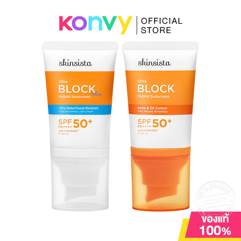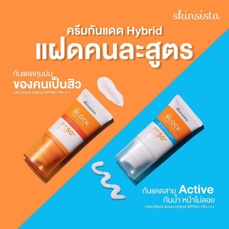 Skinsista Ultra Block Hybrid Sunscreen SPF50+ PA++++ สกินซิสต้า ครีมกันแดดสูตรไฮบริด 30ml (Acne & Oil Control/Active)