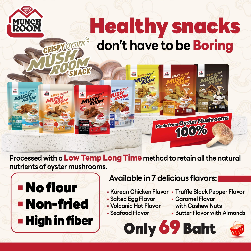 Munchroom มันซ์รูม ขนมเห็ดนางฟ้าอบกรอบ Crispy Oyster Mushroom Snack (30 g)