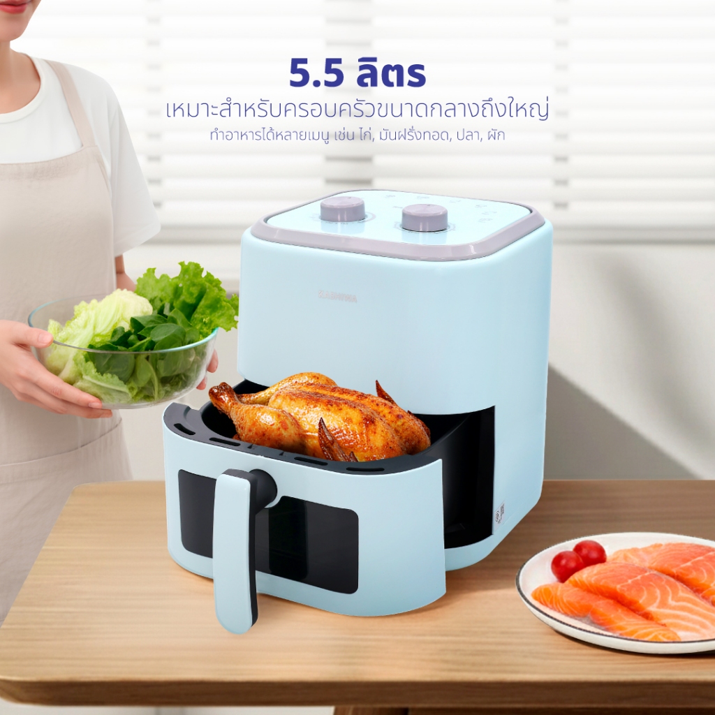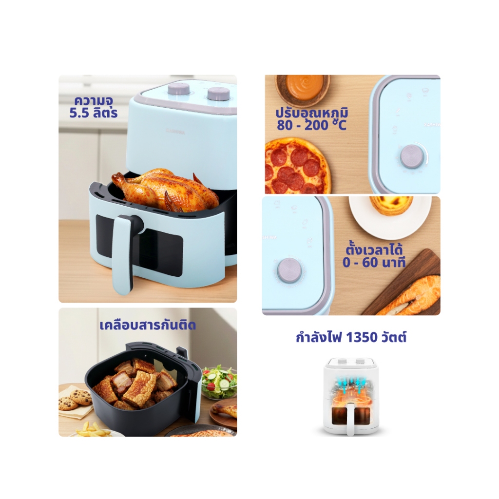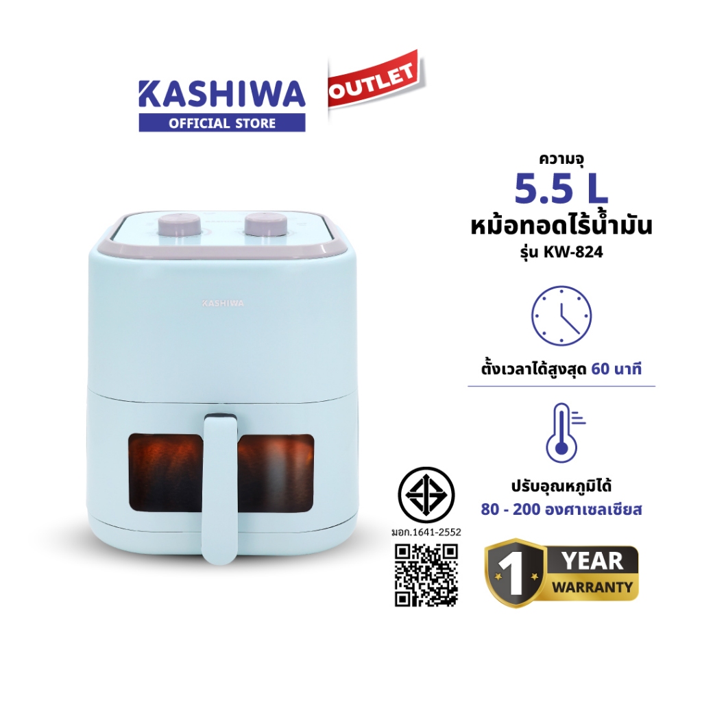 KASHIWA รุ่น KW-824 หม้อทอดไร้น้ำมัน หม้อทอดไฟฟ้า หม้อทอด Air Fryer ขนาด 5.5 ลิตร (สีฟ้า)2025