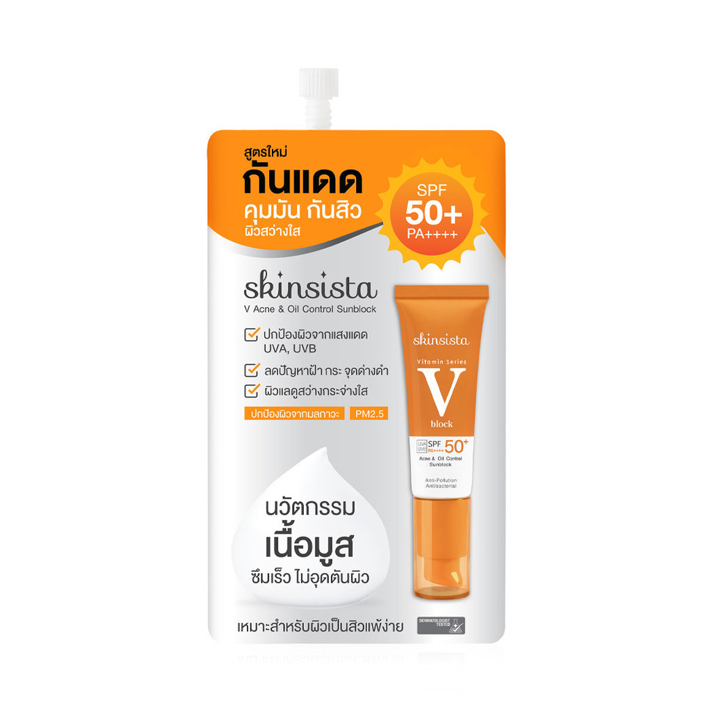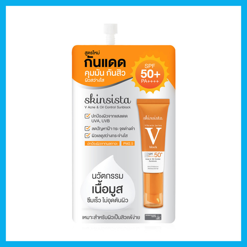 Skinsista V Acne & Oil Control Sunblock SPF50+ PA++++ 5g ครีมกันแดด 6in1 ปกป้องผิวจากแสงแดดได้ยาวนาน.