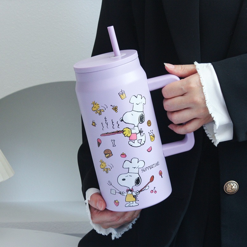 SNOOPY สนูปปี้ ถ้วยเก็บความร้อน2024ถ้วยน้ําแข็งถ้วยฟางสแตนเลส1500มิลลิลิตรถ้วยน้ําความจุขนาดใหญ่พร้อมที่จับถ้วยน้ําน้ําแข็งถ้วยโท
