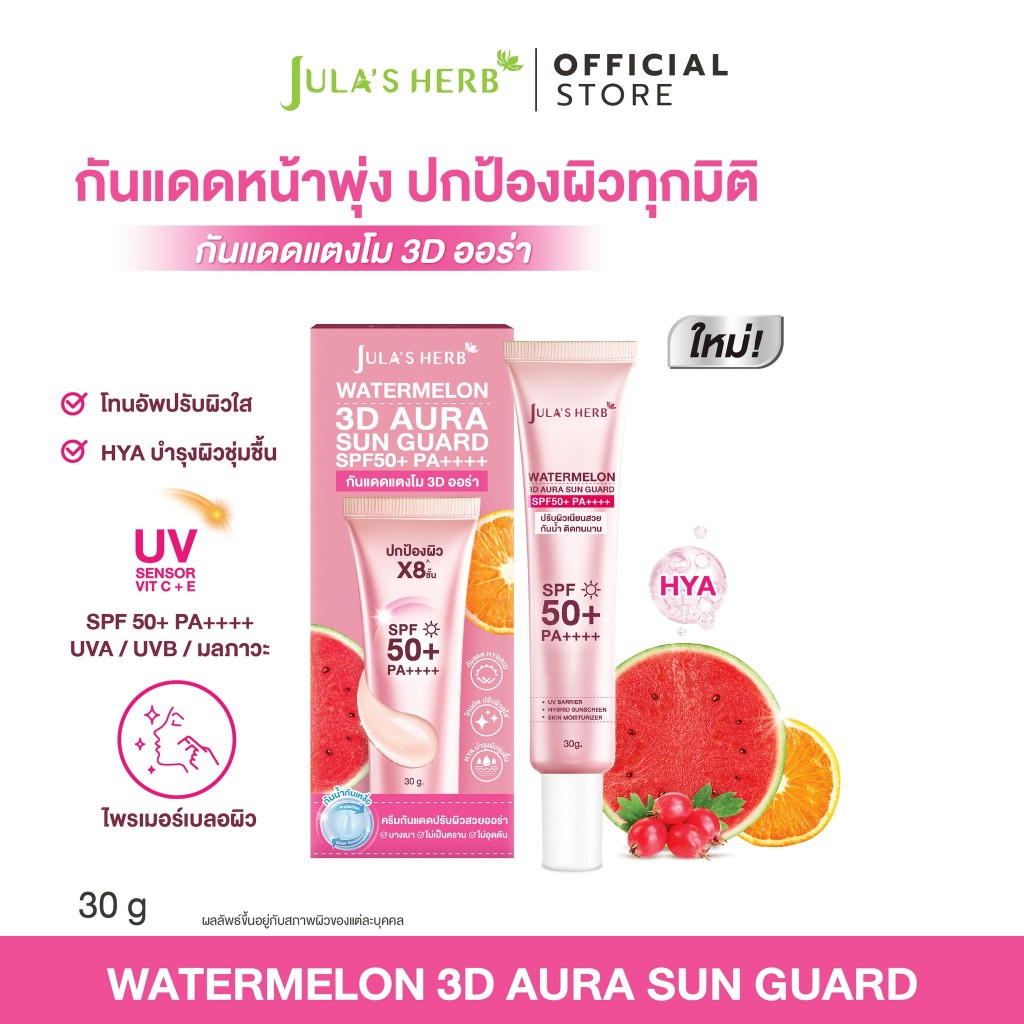 [เซต 3 ชิ้น] จุฬาเฮิร์บ กันแดด3D ออร่า 1หลอด + แป้ง 1 ตลับ + ลิปส ีแดง 1 แท่ง