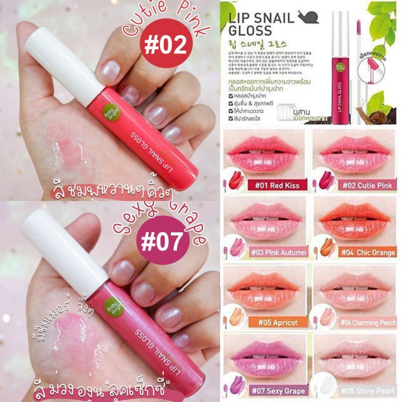 Baby Bright【ลิปกลอสทรีทเม้นท์】🐌เมือกหอยทาก ช่วยฟื้นฟู บำรุงริมฝีปาก Lip Snail Gloss 10ml.