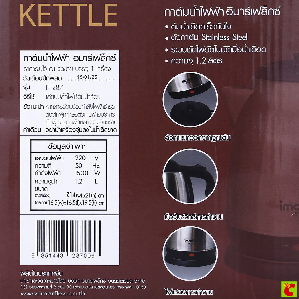 อิมาร์เฟล็กซ์ กาต้มน้ำไฟฟ้าสแตนเลส รุ่น IF-287 1.2 ล.