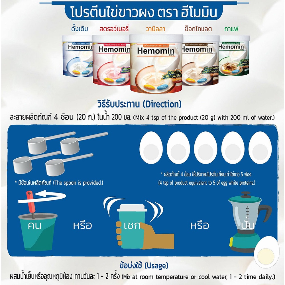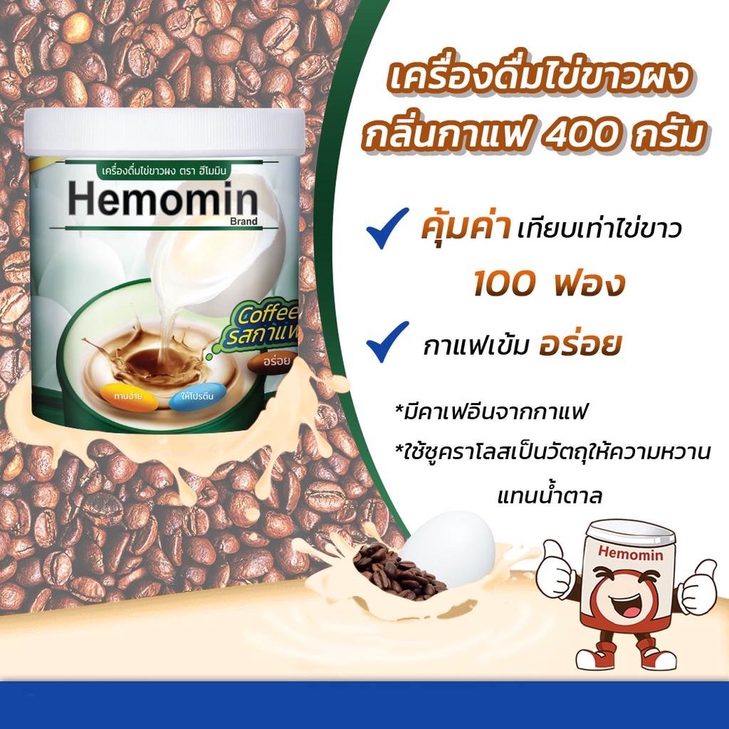[รสกาแฟ] Hemomin Coffee Flavored Egg White Powder ฮีโมมิน เครื่องดื่ม ไข่ขาวผง [400 g.]