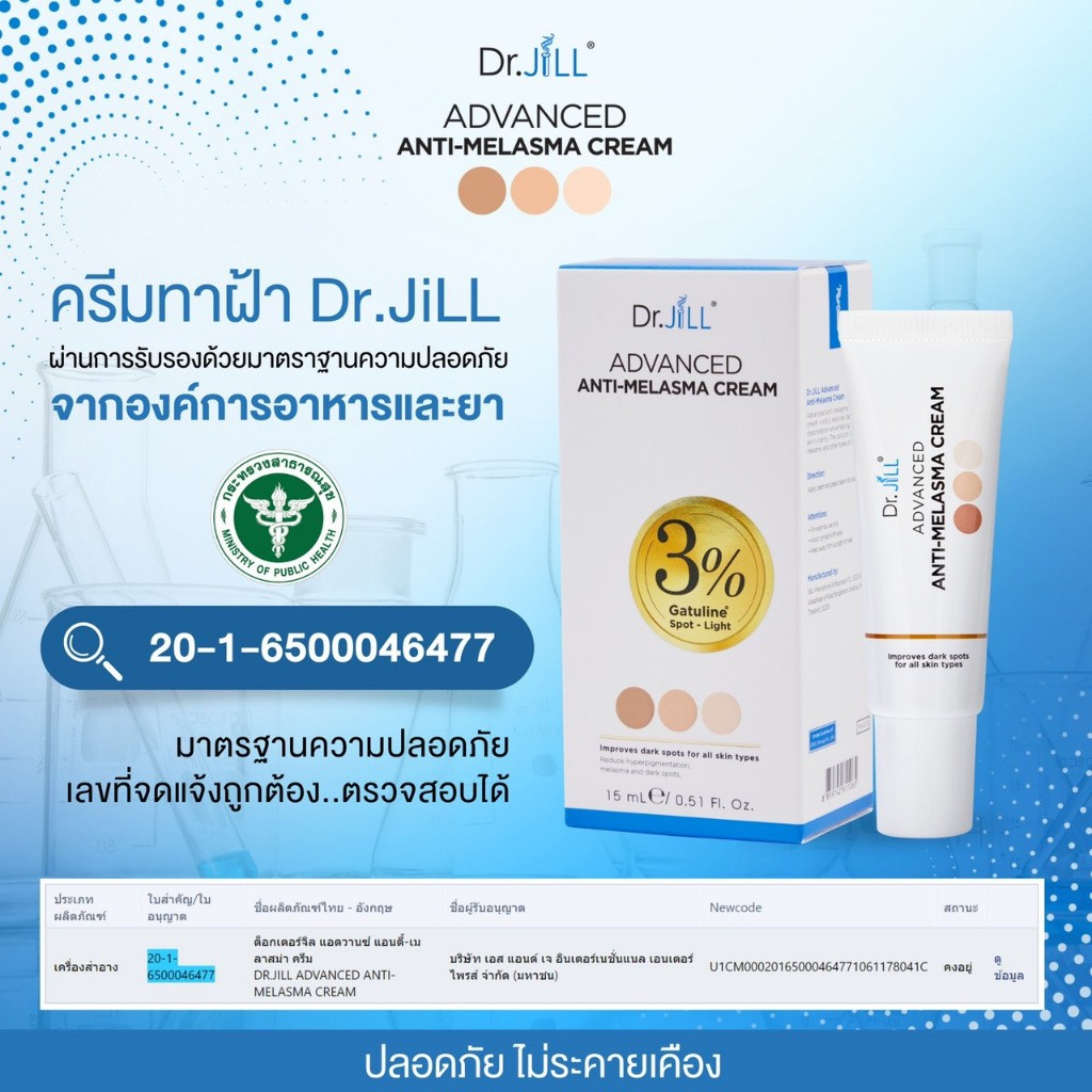 (✔️ส่งฟรี) Dr.JiLL ครีมทาฝ้า Advanced Anti-Melasma Cream ครีมทาฝ้าบุ๋ม ปนัดดา ดร.จิล ครีมแก้ฝ้า 15 ml.