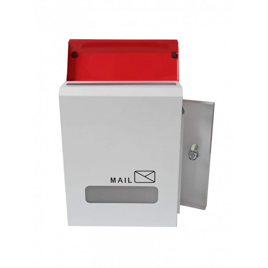 GlobalHouse ตู้จดหมายเหล็ก พร้อมกุญแจ รุ่น HF301 สีขาว-แดง ขนาด 25x30x10 ซม ของแท้คุณภาพดี
