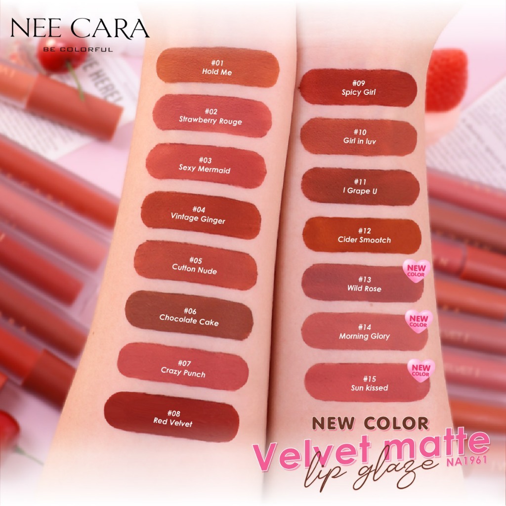 NEE CARA นีคาร่า ลิปสติก ลิปแมท เวลเวท เนื้อกำมะหยี่ N1961 VELVET MATTE LIP GLAZE 4 กรัม