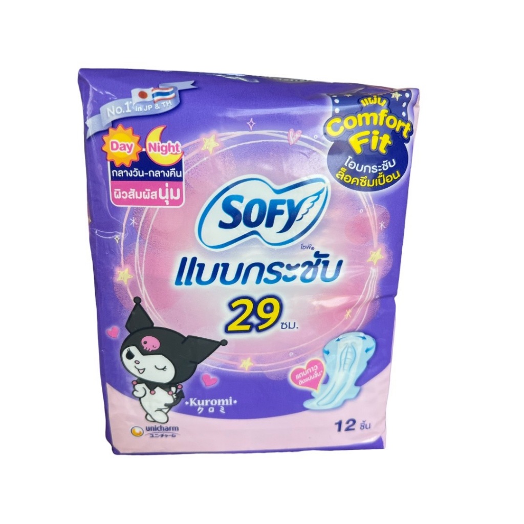 Sofy ผ้าอนามัยโซฟี กรชับ 29 ซม. ห่อสีม่วง บรรจุ 12 ชิ้น ( 1 ห่อ )