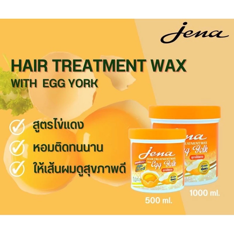 (1 กระปุก) Jena Hair Treatment Wax (สูตรไข่แดง) บำรุงเส้นผม ทรีทเมนท์ (500 ml.)