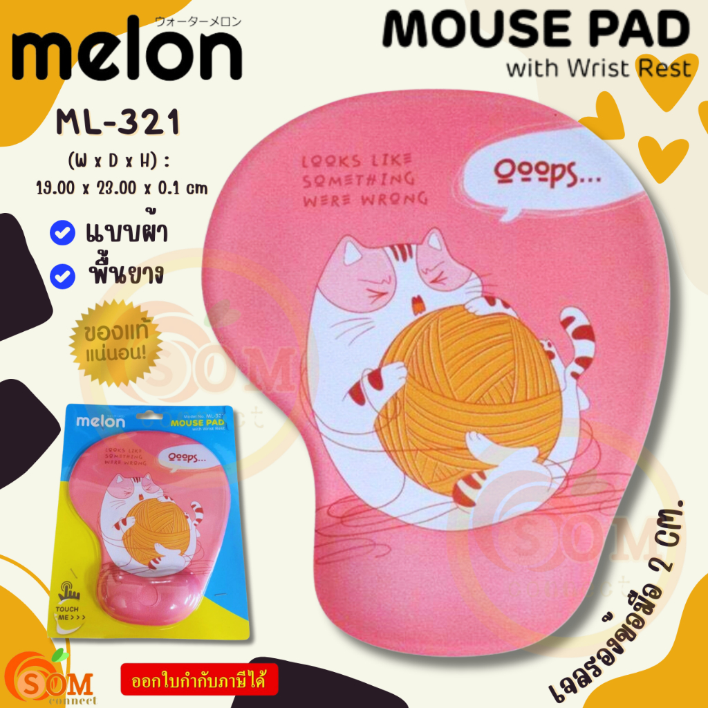 (ML-321 C Ooops) MOUSE PAD แผ่นรองเมาส์แบบผ้า Melon เจลรองข้อมือลดอาการเมื่อยล้า พื้นยาง -ของแท้