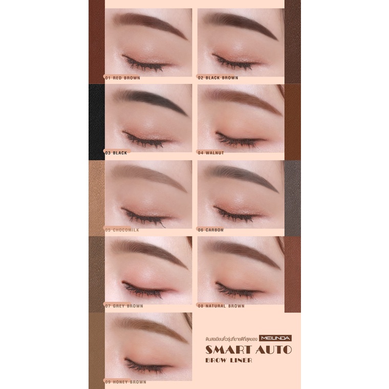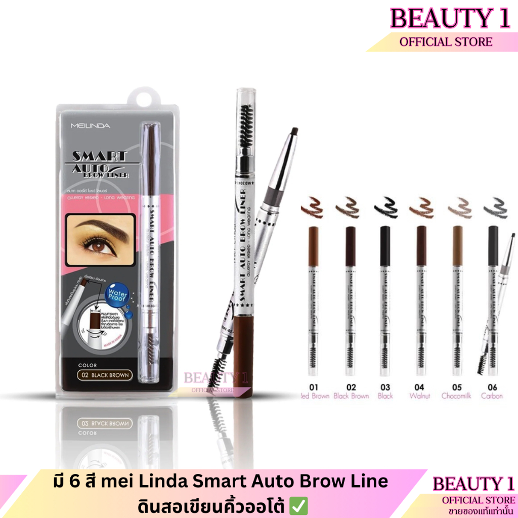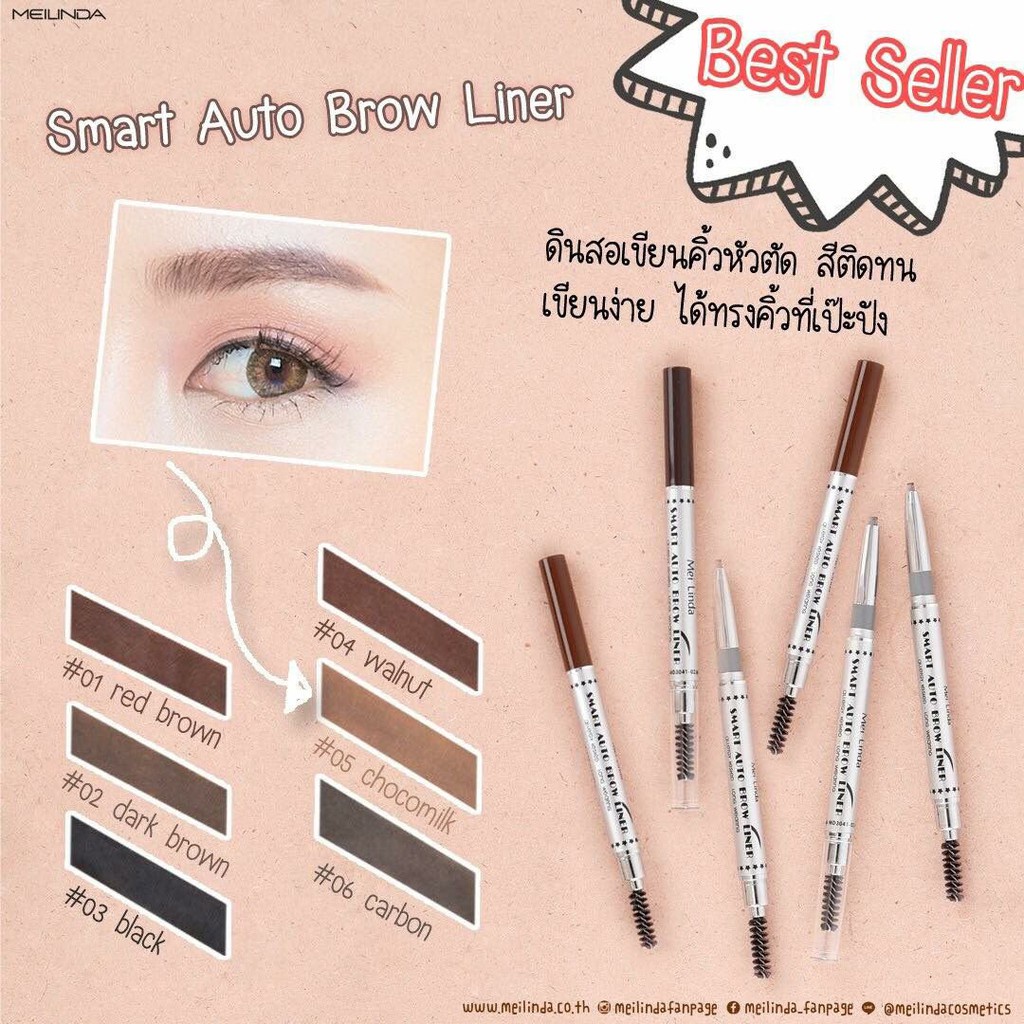 มี 6 สี mei Linda Smart Auto Brow Line/ ดินสอเขียนคิ้วออโต้ ✅