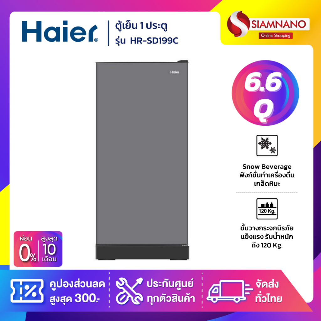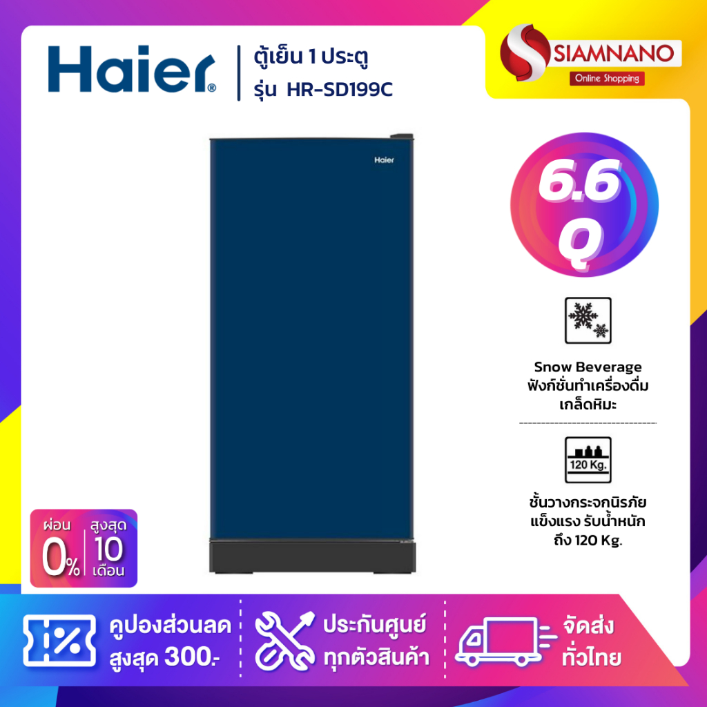 ตู้เย็น Haier รุ่น HR-SD199C ขนาด 6.6Q สีเงิน / สีน้ำเงิน ( รับประกันสินค้า 3 ปี )