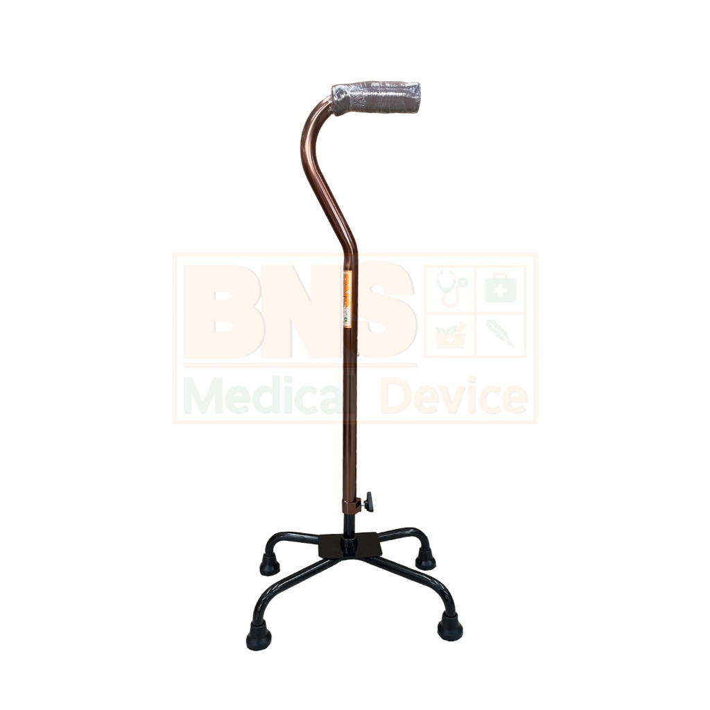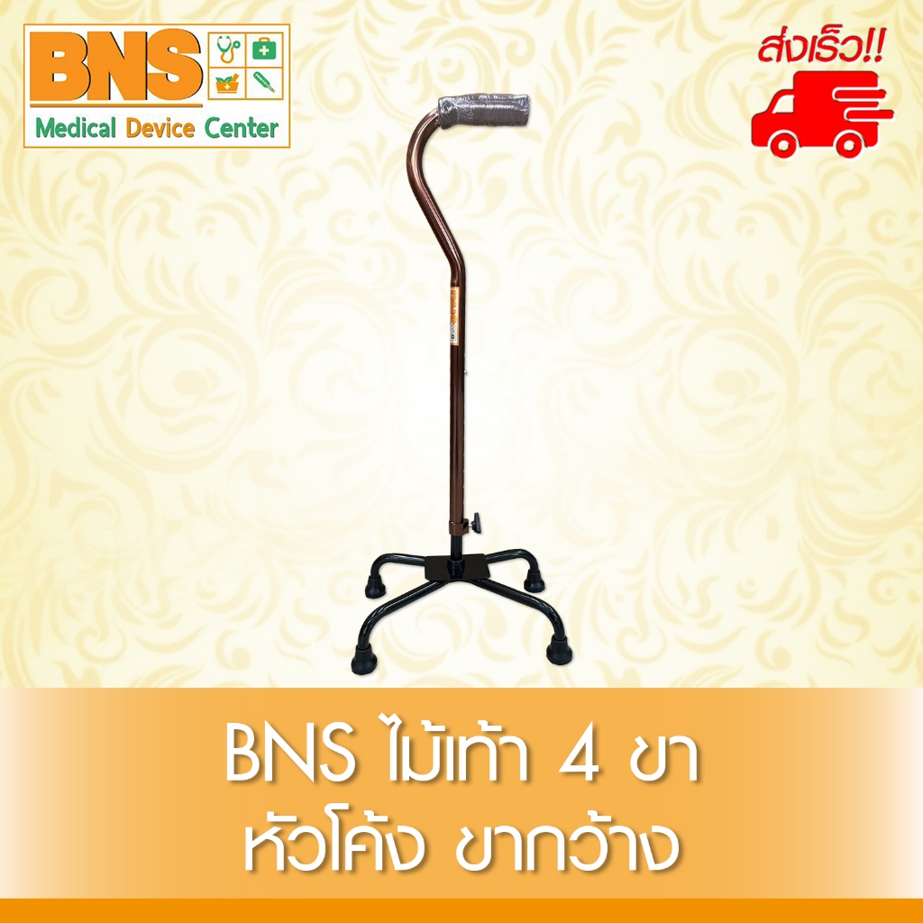 (สินค้าใหม่มีรับประกัน) BNS ไม้เท้าผู้ป่วย ไม้เท้า 4 ขา หัวโค้ง สีน้ำตาล รุ่นขากว้าง (ส่งไว)(ถูกที่สุด)