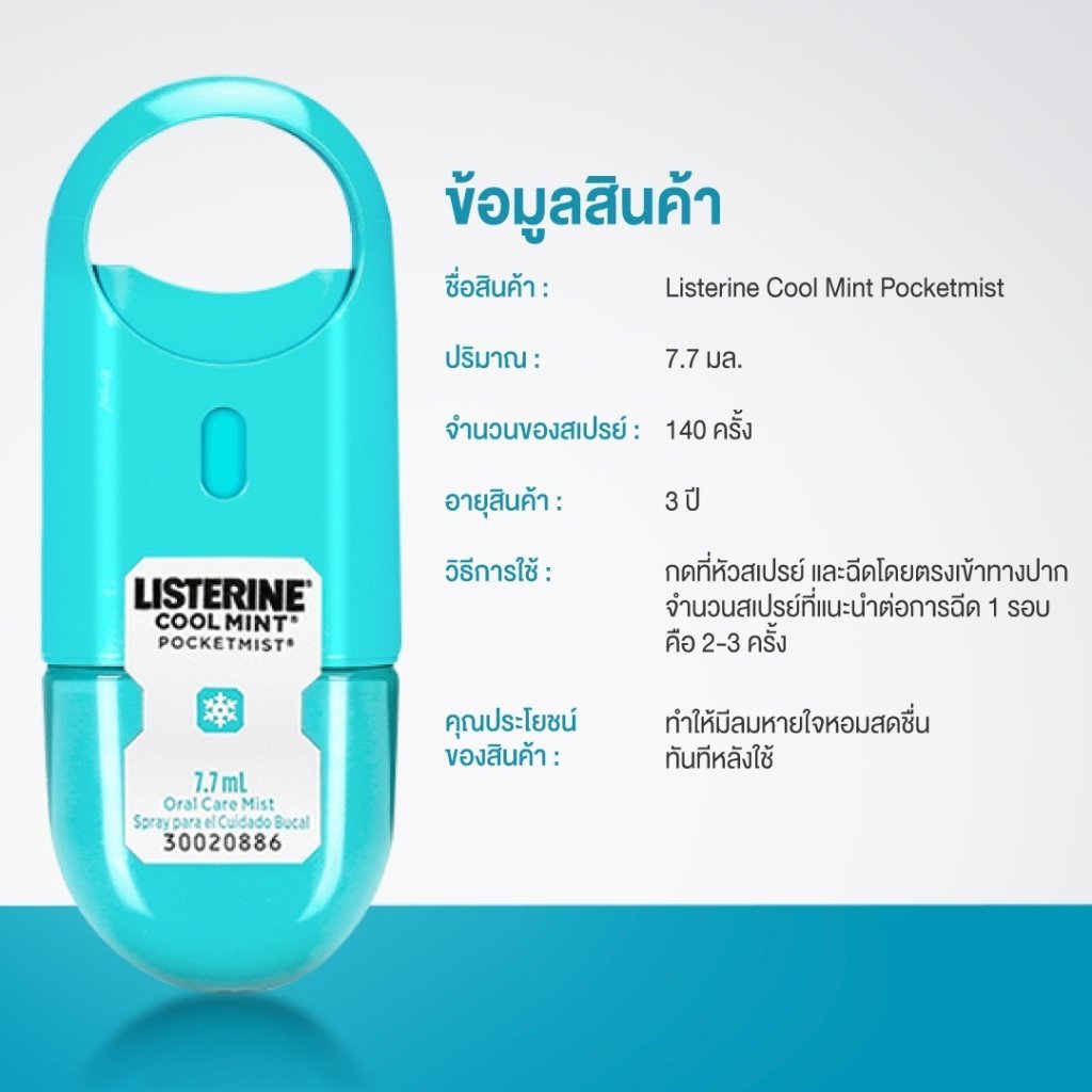 Listerine ลิสเตอรีน พ็อกเก็ตมิสท์ สเปรย์ 7.7 มล. สเปรย์ฉีดปาก แบบพกพา NLM