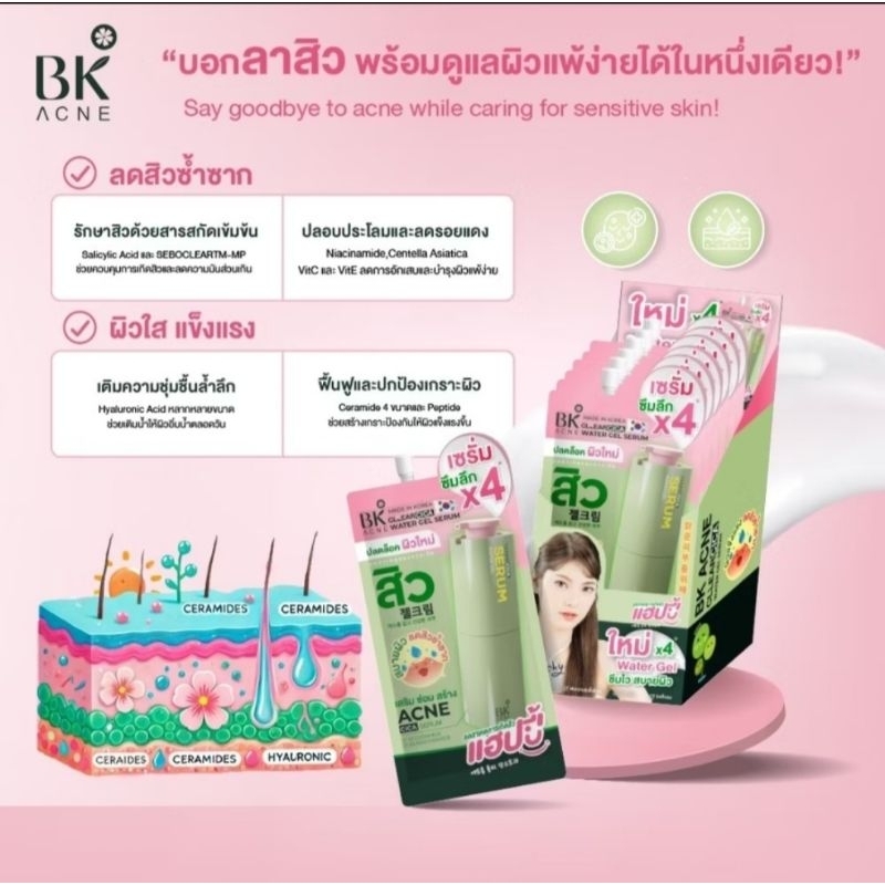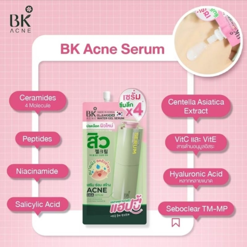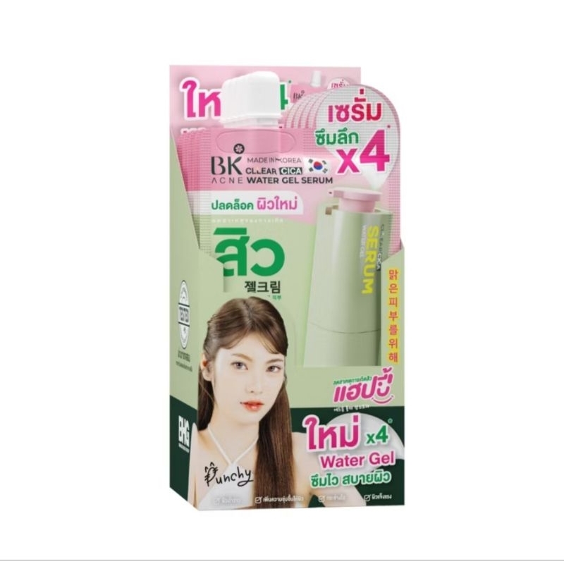 ส่งฟรี/มีไลฟ์ยกกล่อง) BK Acne CIlear Cica water gel Serum เซรั่มซึมลึกx4 เติมความช่มชื้นลํ้าลึก Made inKorea 1 กล่อง6ซอง
