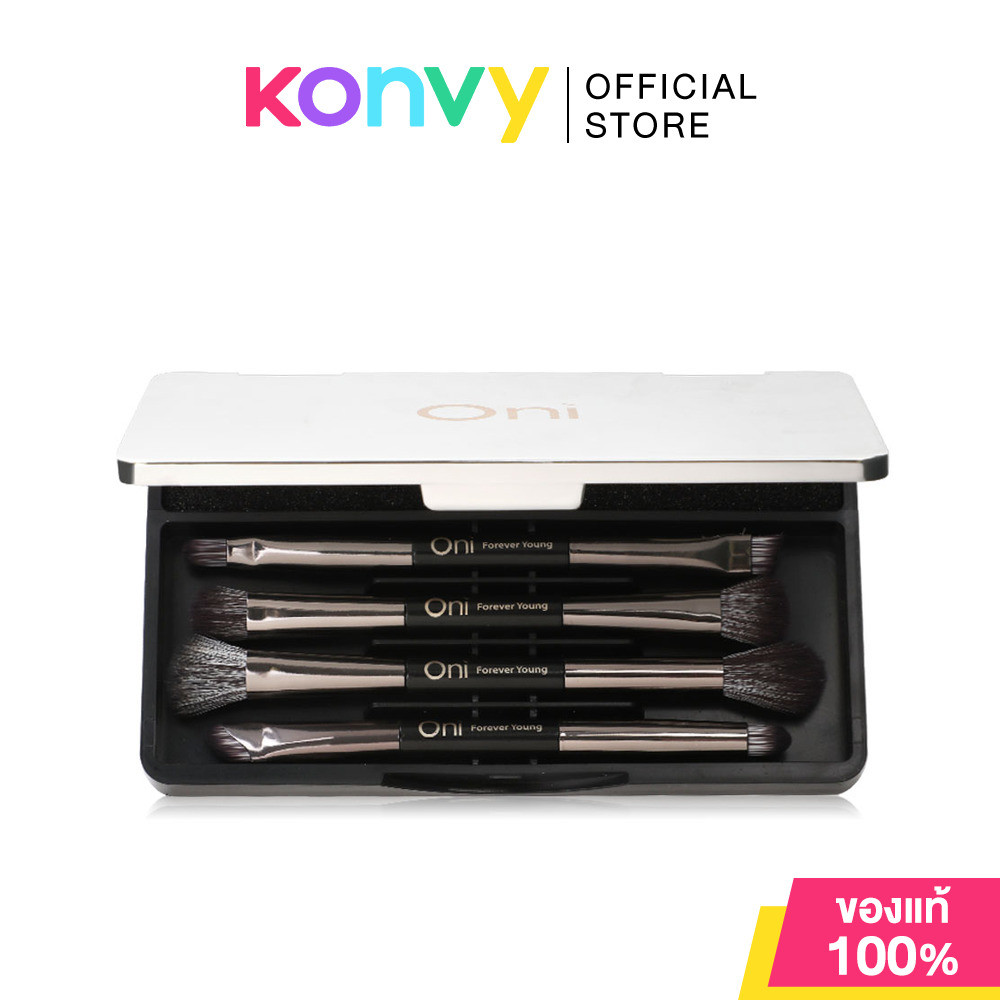 Oni Mirror Dual-Ended Brush Set 4pcs โอนิ เซทแปรงแต่งหน้า 2 หัว พร้อมกระจกในตัว.