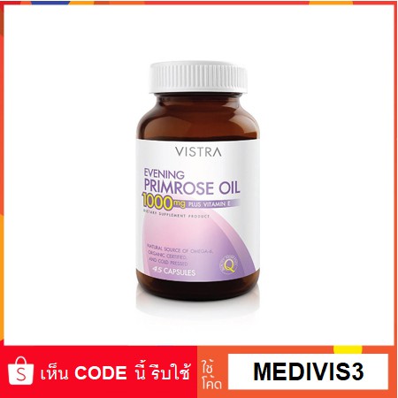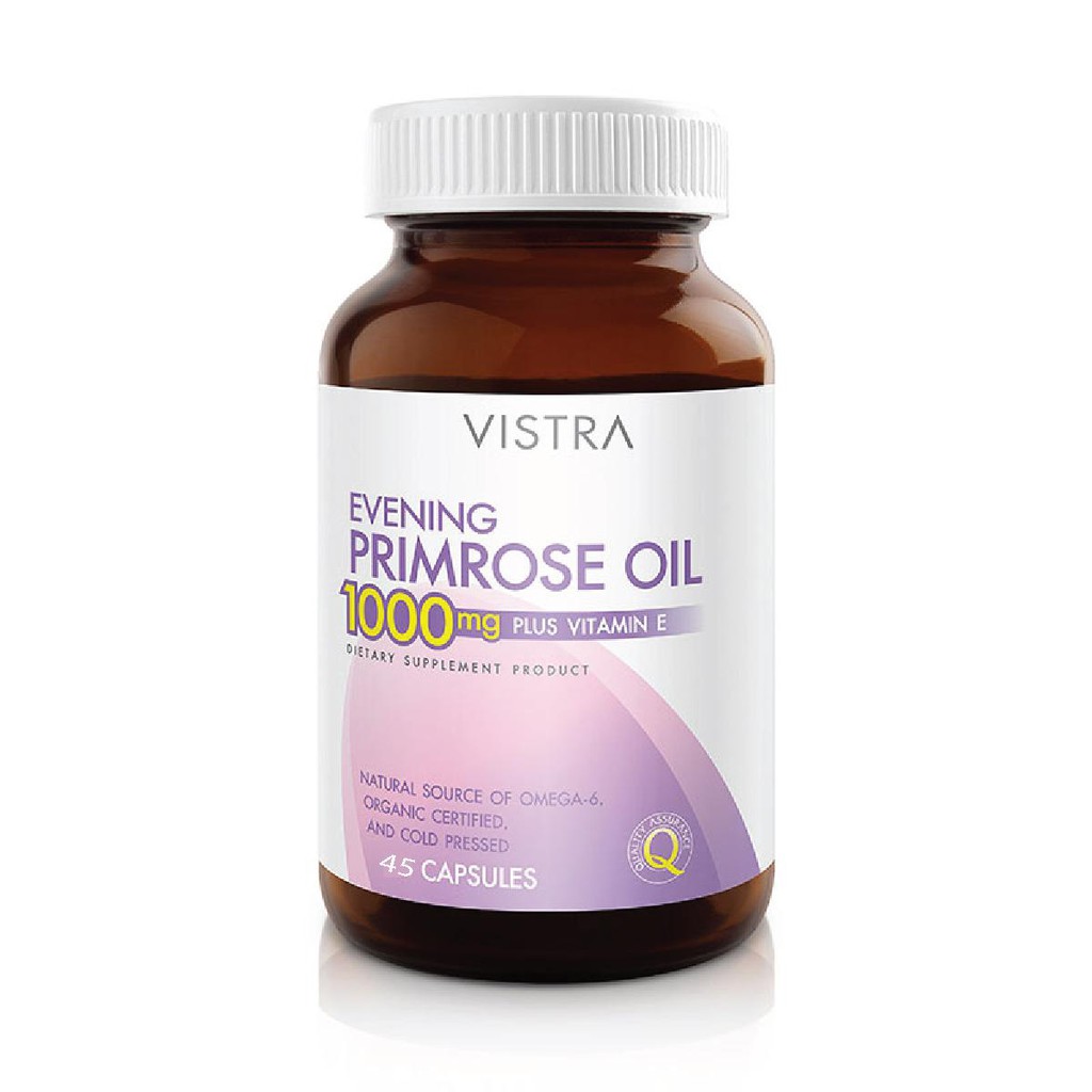 Vistra Evening Primrose Oil 1000mg วิสทร้าอีฟนิ่ง พริมโรส บำรุงผิวลดอาการก่อนมีรอบเดือน 45เม็ด 17620