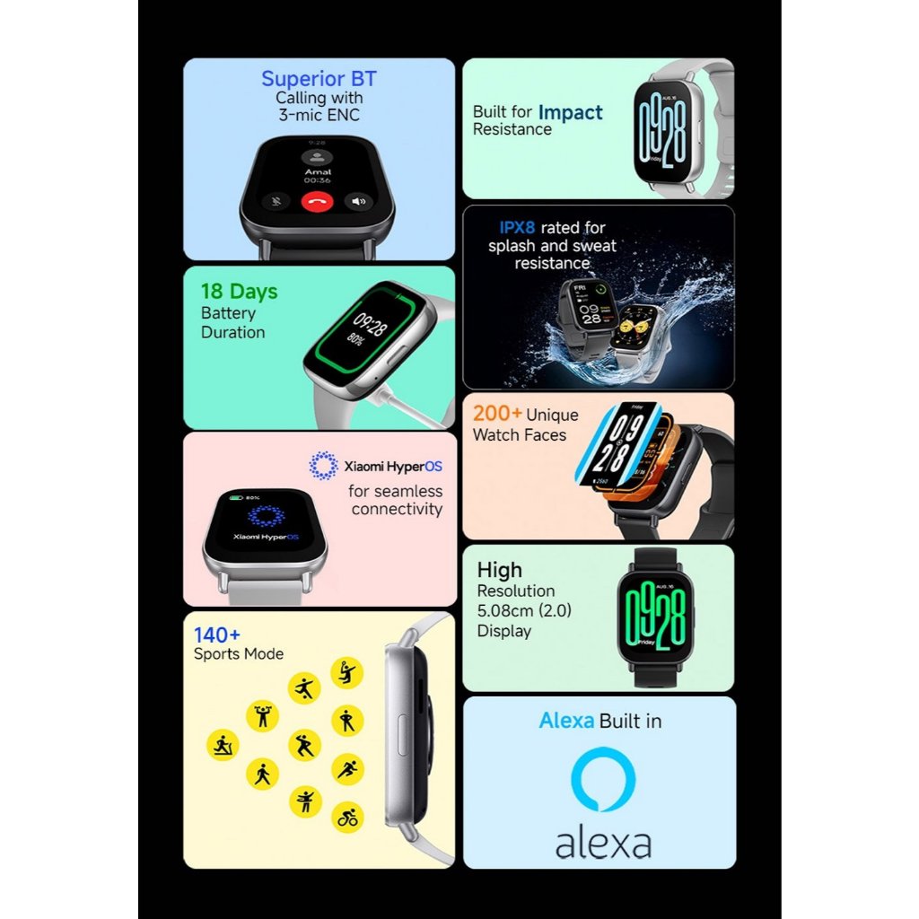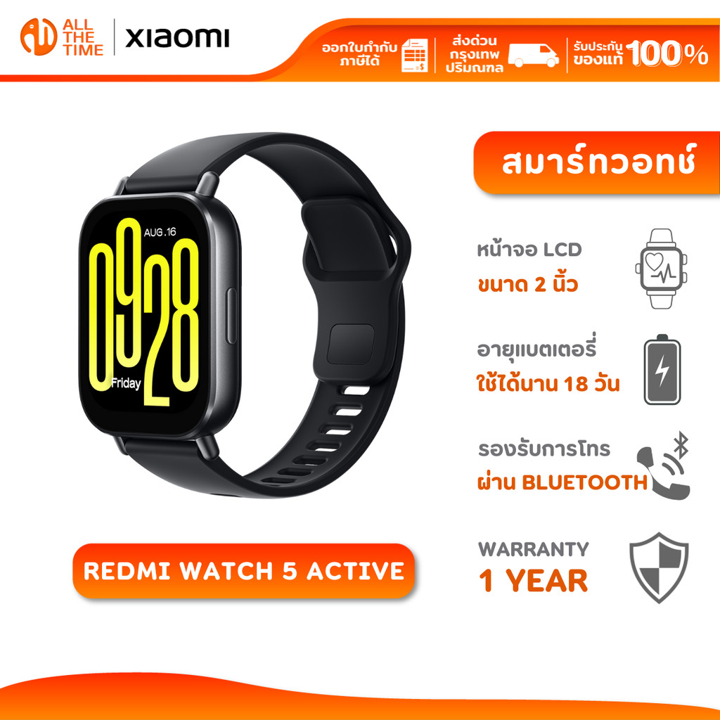 XIAOMI REDMI WATCH 5 ACTIVE นาฬิกาสมาร์ทวอทช์ หน้าจอ LCD 2" แบตเตอรี่ใช้ได้นาน โทรผ่าน Bluetooth