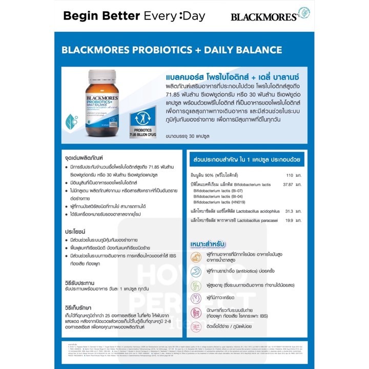 Blackmores Probiotics Daily Balance 30 Capsules ผลิตภัณฑ์เสริมอาหารโพรไบโอติกส์
