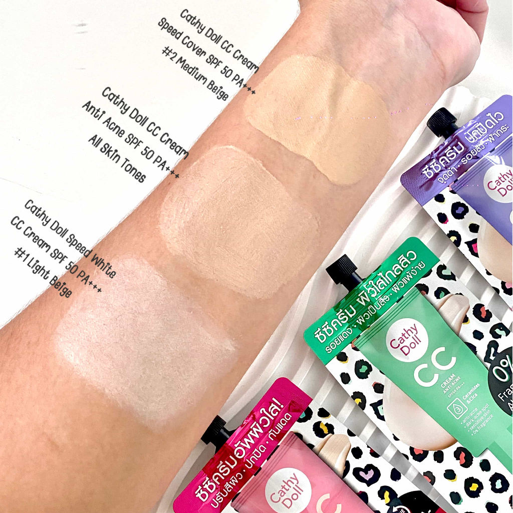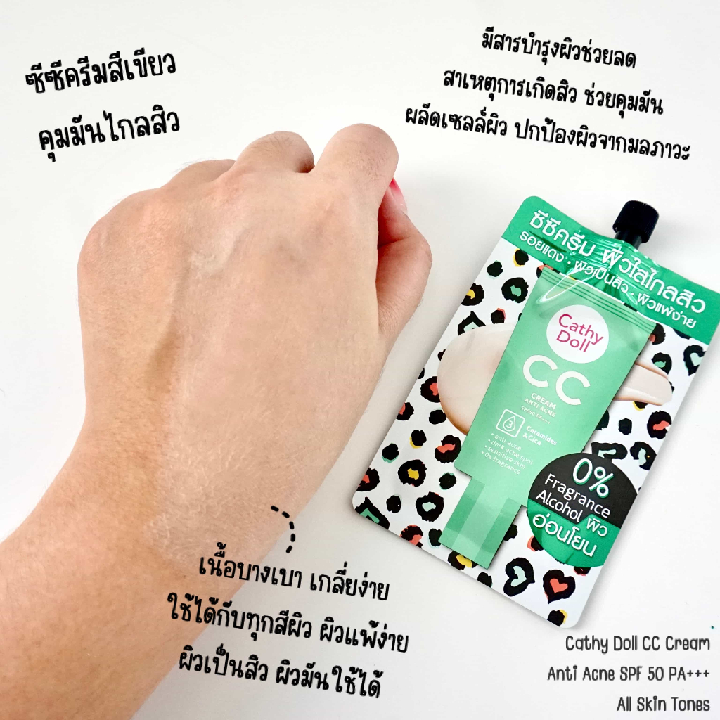 【สีเขียว 50g】ครีมรองพื้น #ซีซีครีมแอนตี้แอคเน่ Cathy Doll CC Cream Anti Acene SPF50 Pa+++