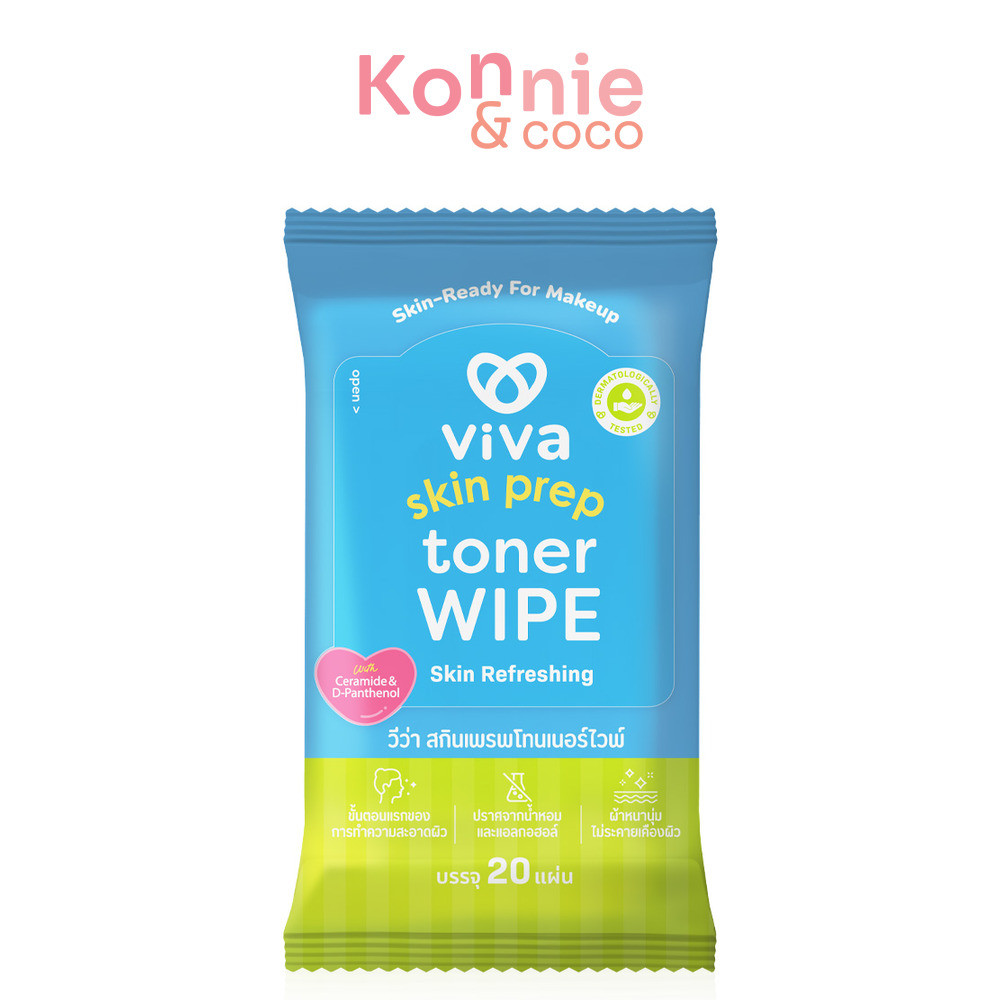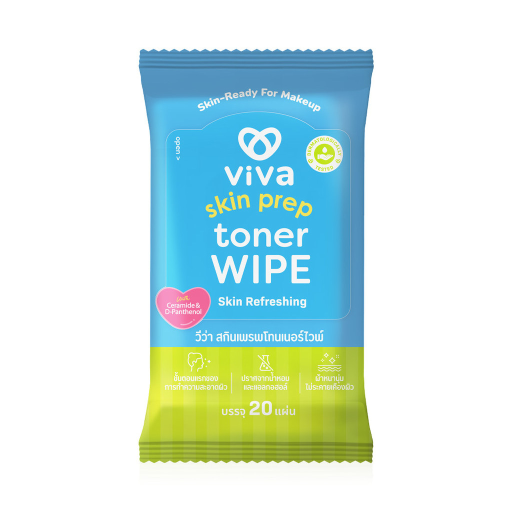 Viva Skin Prep Toner Wipe Skin Refreshing 20 Sheets วีว่า ทิชชู่เปียกสำหรับเช็ดทำความสะอาดผิวหน้า.