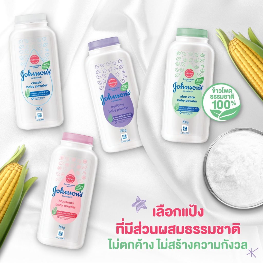 Johnson จอห์นสัน เบบี้ พาวเดอร์ 180-200 กรัม แป้งเด็ก แป้งฝุ่น ช่วยป้องกันผดผื่น