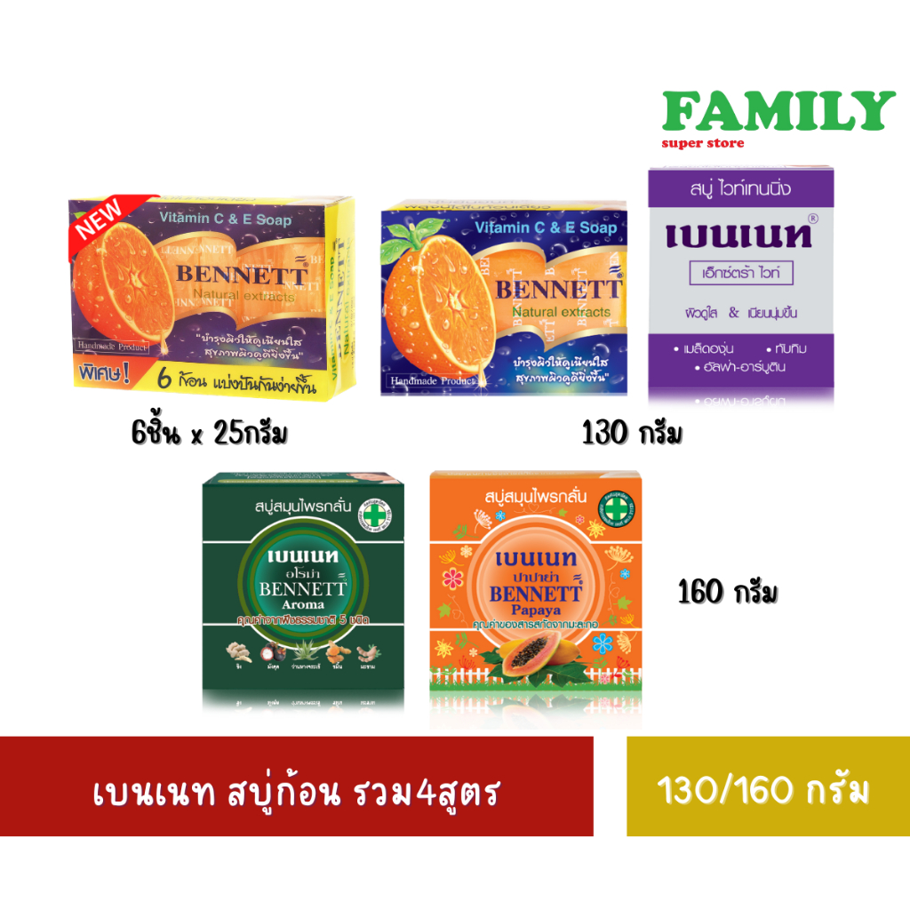 Bennett สบู่สมุนไพร เบนเนท สบู่ก้อน (มีให้เลือก 5 แบบ) 130/150/160กรัม [006]