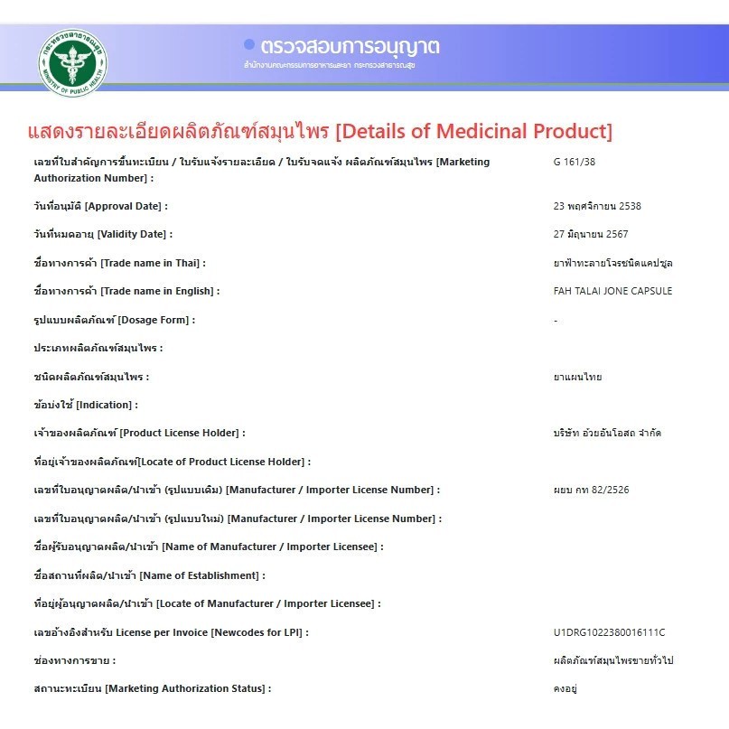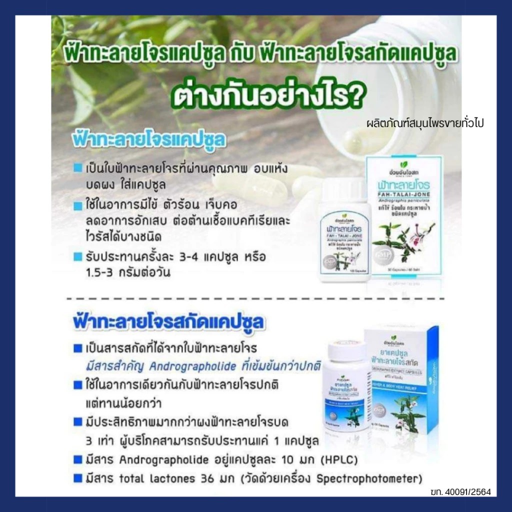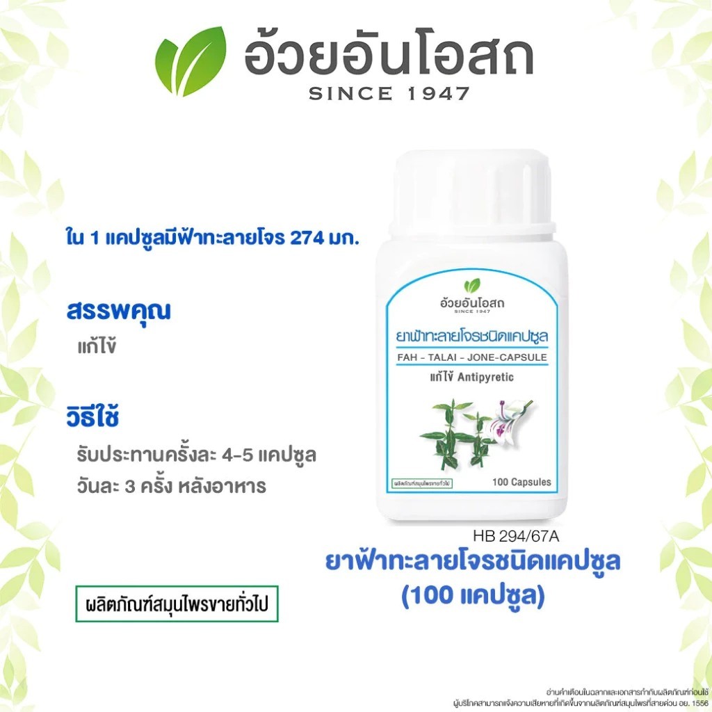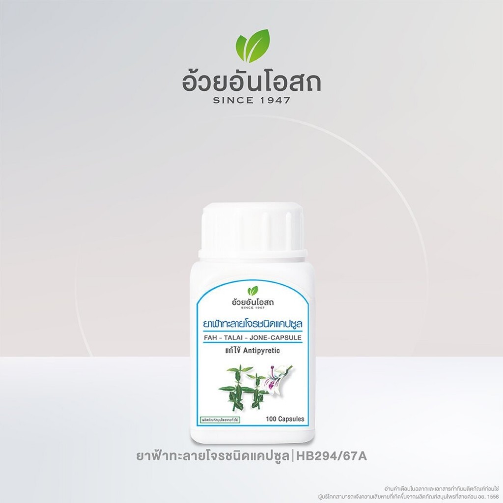 ฟ้าทะลายโจรชนิดแคปซูล อ้วยอันโอสถ Herbal One บรรจุ 100 แคปซูล