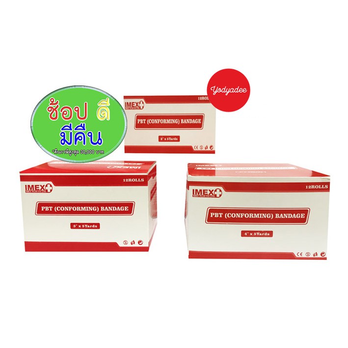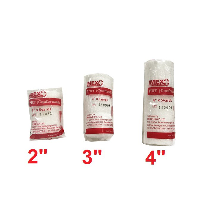 PBT (CONFORMING) BANDAGE ผ้าก๊อตพันแผล ชนิดยืดได้ ขนาด 2นิ้ว/3นิ้ว/4นิ้ว X5 หลา กล่องละ12ม้วน