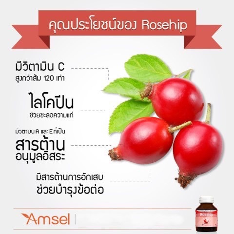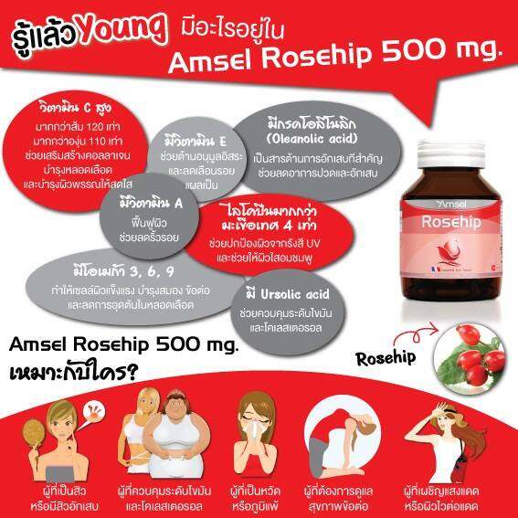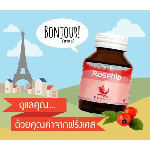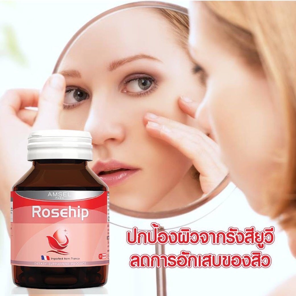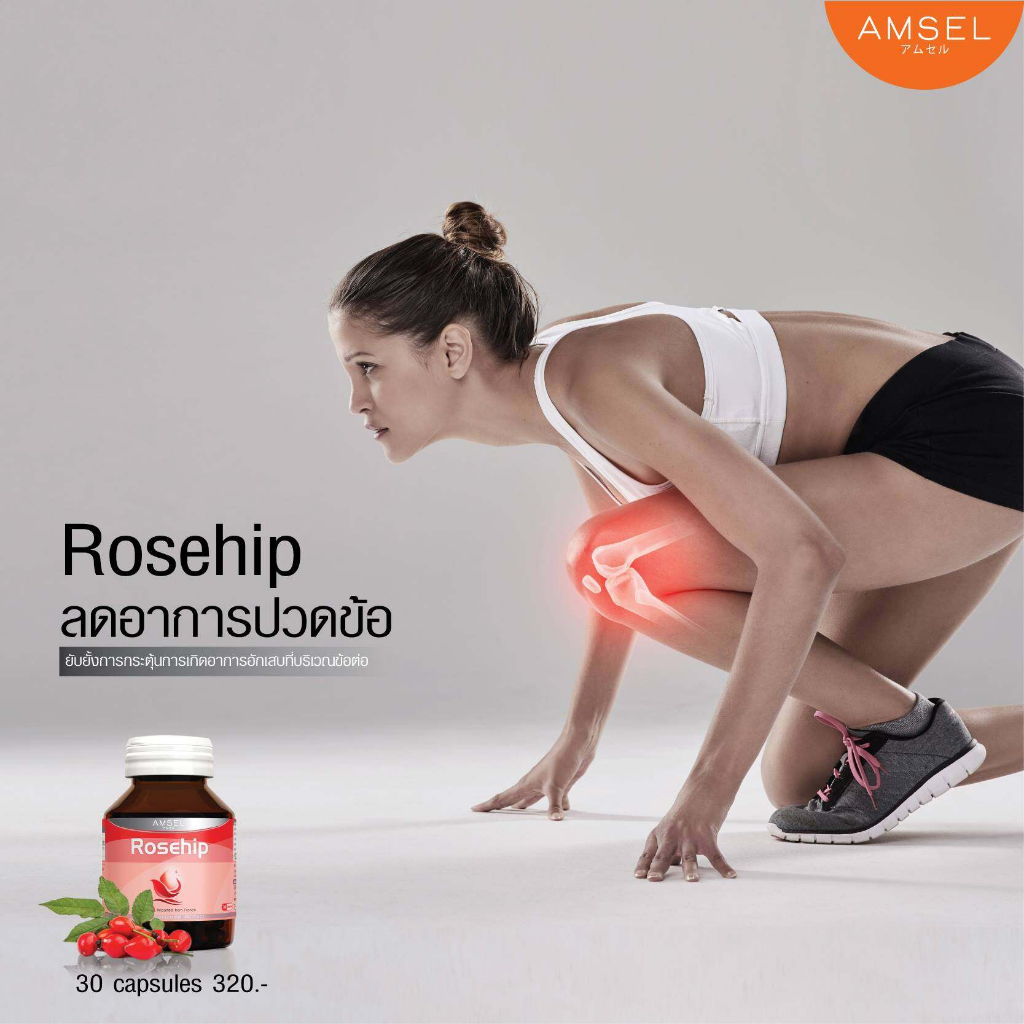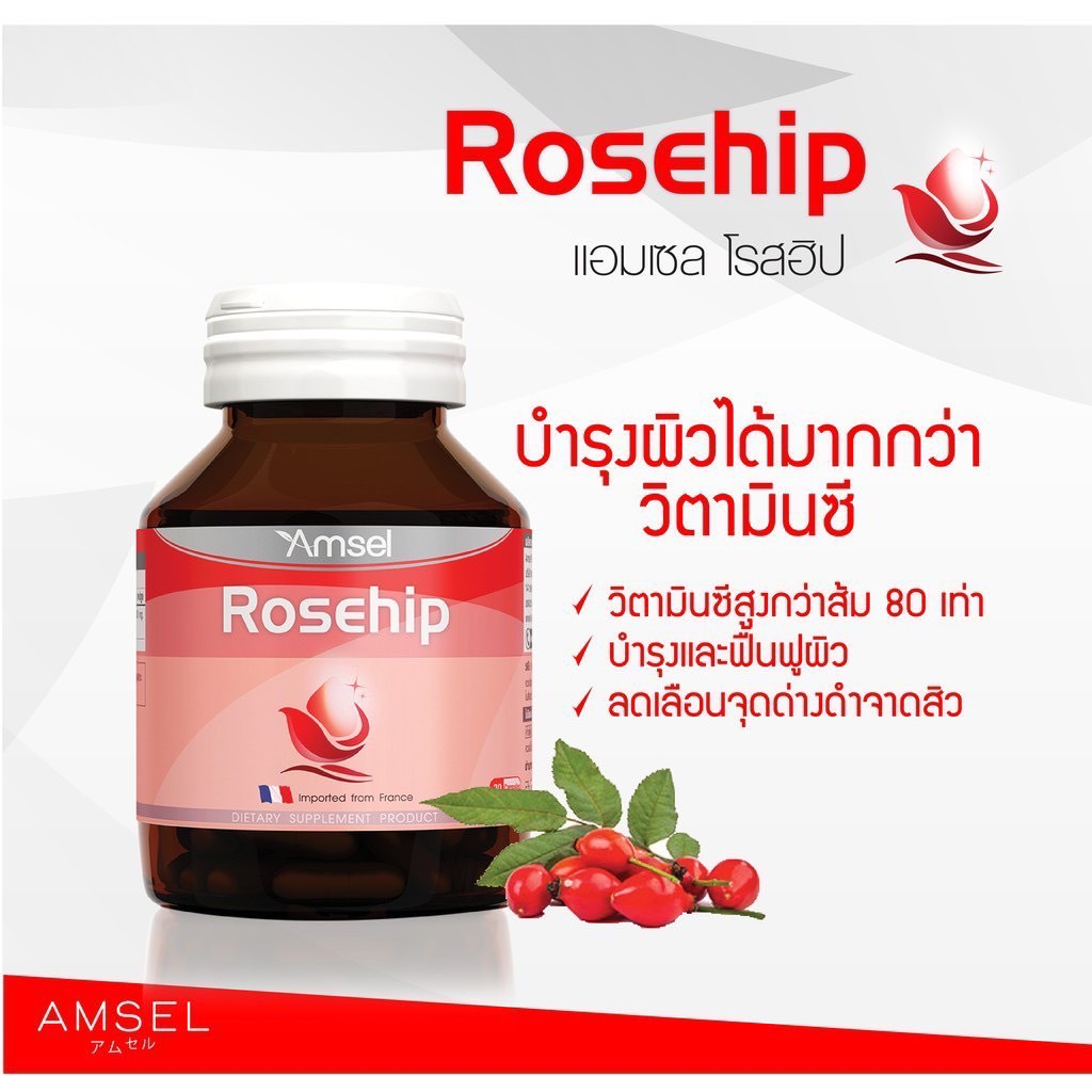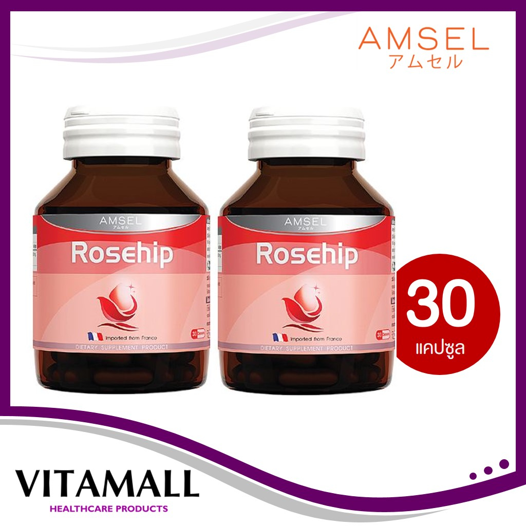 Amsel Rosehip แอมเซล โรสฮิป สารสกัดจากกุหลาบป่า วิตามินซีสูง (30 แคปซูล X2 ขวด)