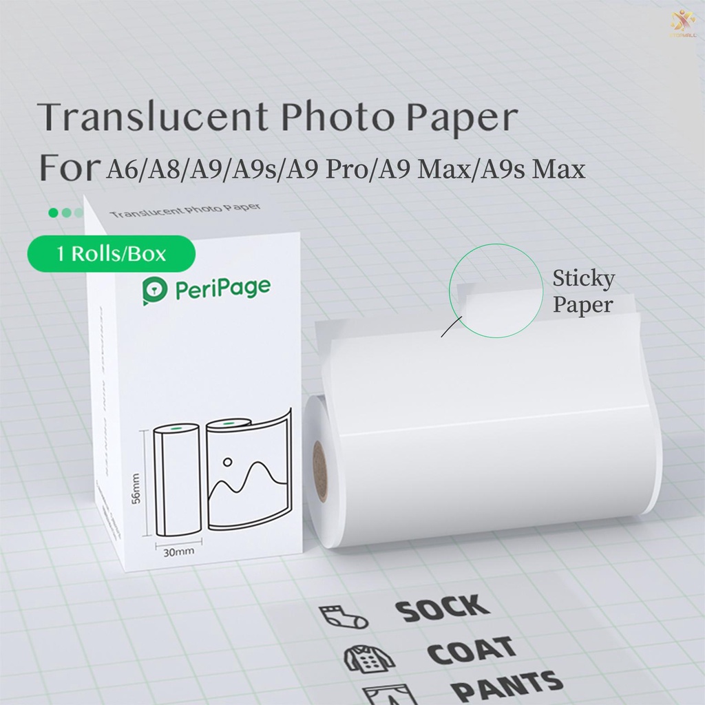 PeriPage 56 x 30mm Translucent Photo Sticker BPA-Free Adhesive Thermal Paper Roll Sticky Paper Waterproof Oil-proof Friction-proof for PeriPage A6/A8/A9/A9s/A9 Pro/A9 Max/A9s Max Mini BT Pocket Thermal Mobile Printer