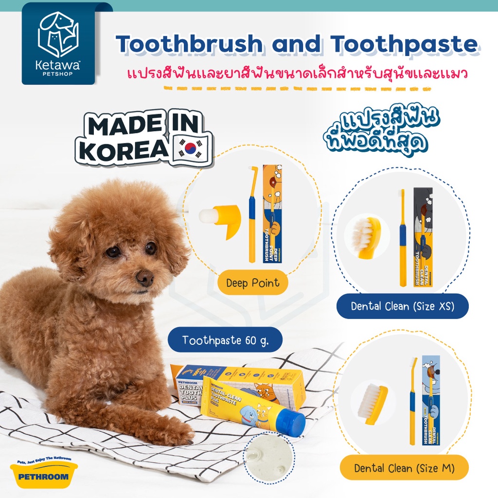 Pethroom Tooth Brush and Toothpaste เเปรงสีฟันเเละยาสีฟัน สำหรับสุนัข เเละเเมว นำเข้าจากเกาหลี 🇰🇷