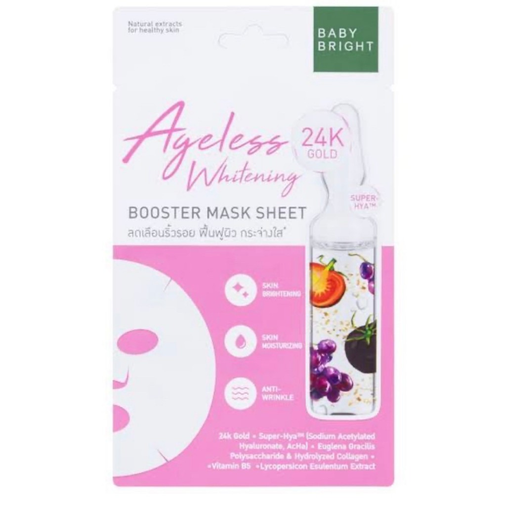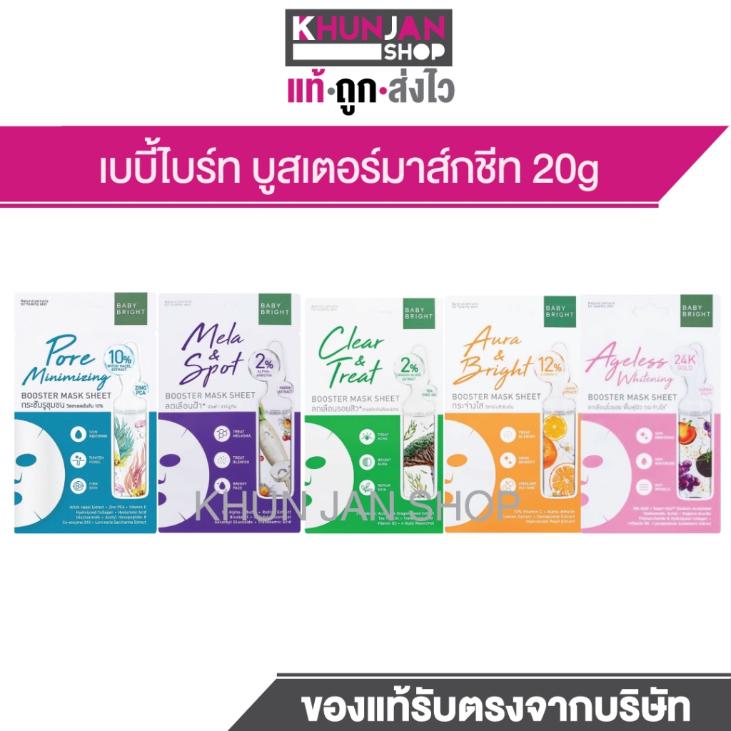 1แผ่น Baby Bright ออร่าแอนด์ไบร์ทบูสเตอร์มาส์กชีท 20g เบบี้ไบร์ท มาส์กหน้า mask
