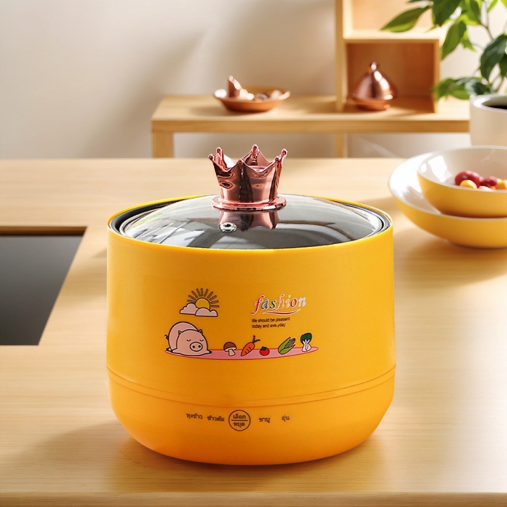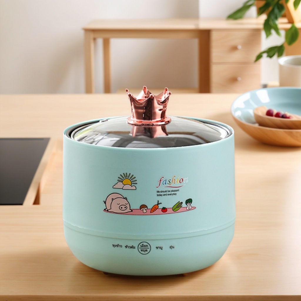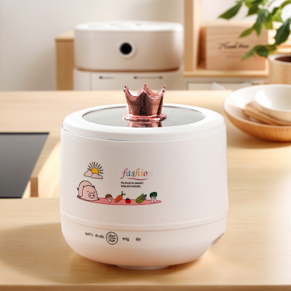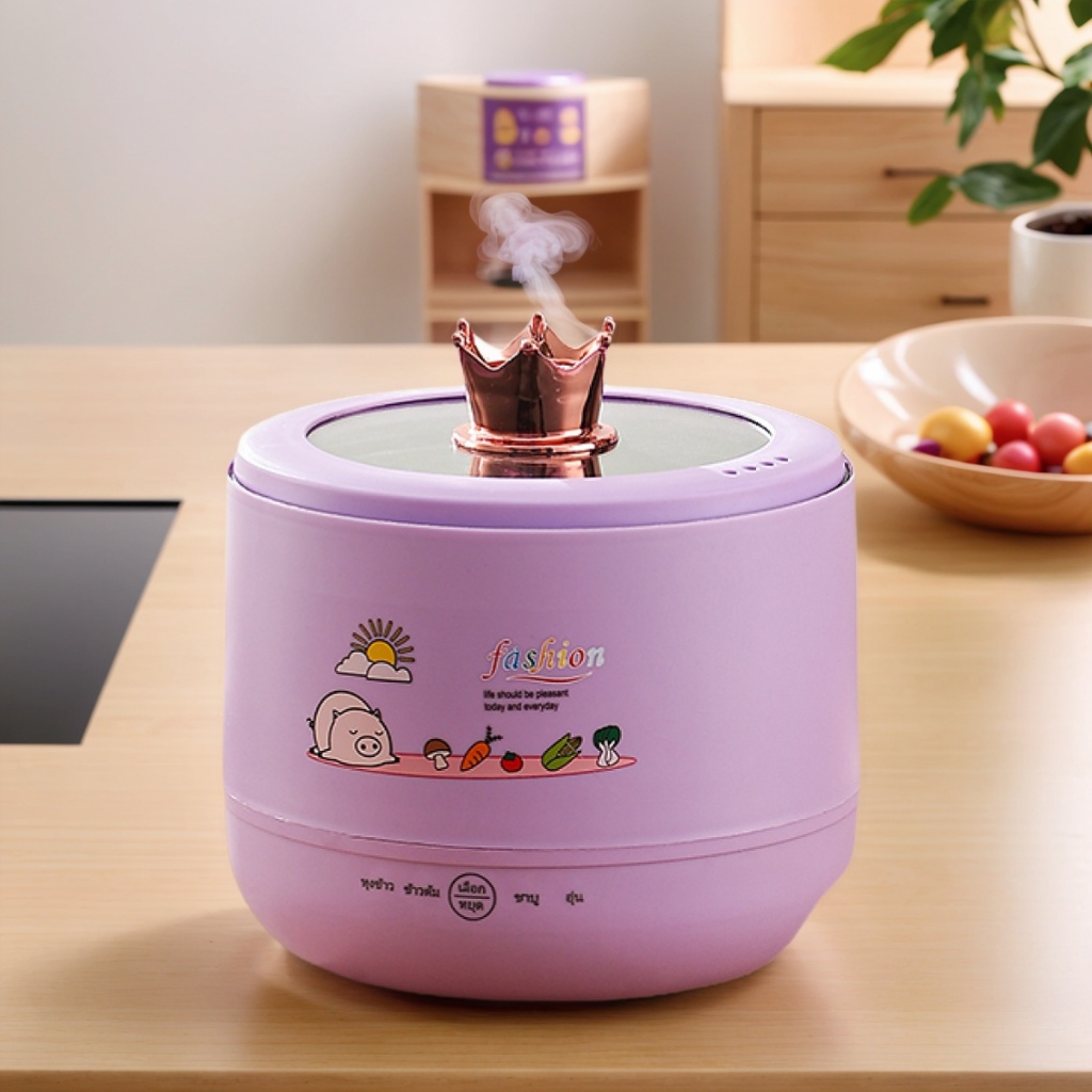 หม้อหุงข้าว หม้อไฟฟ้า อเนกประสงค์ความจุ 1 ลิตร ขนาด 17 ซม.เหมาะสำหรับ1-2ท่าน สีสันเรียนหรู ใช้หุงข้าว ต้ม แกง อุ่น ได้